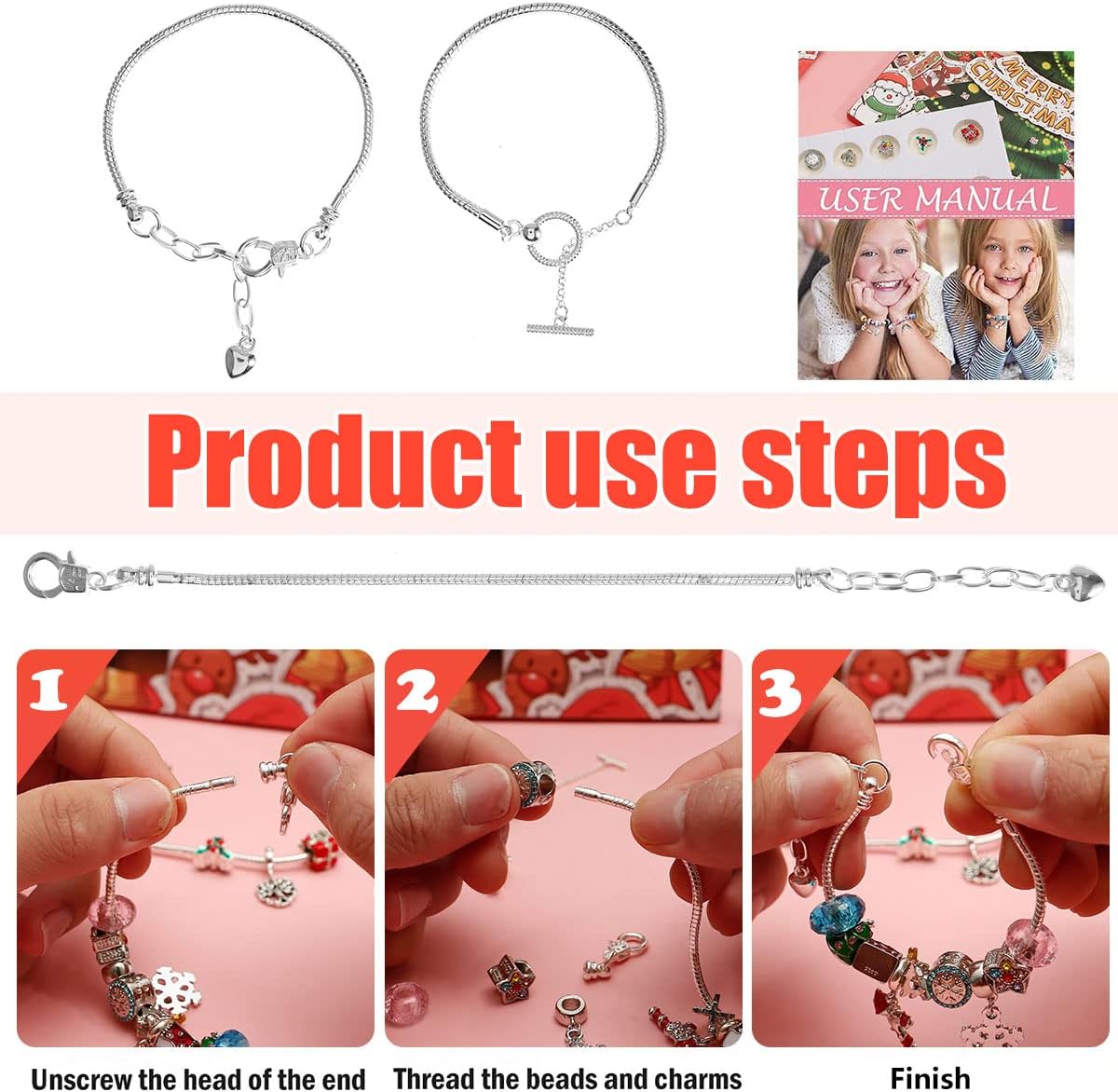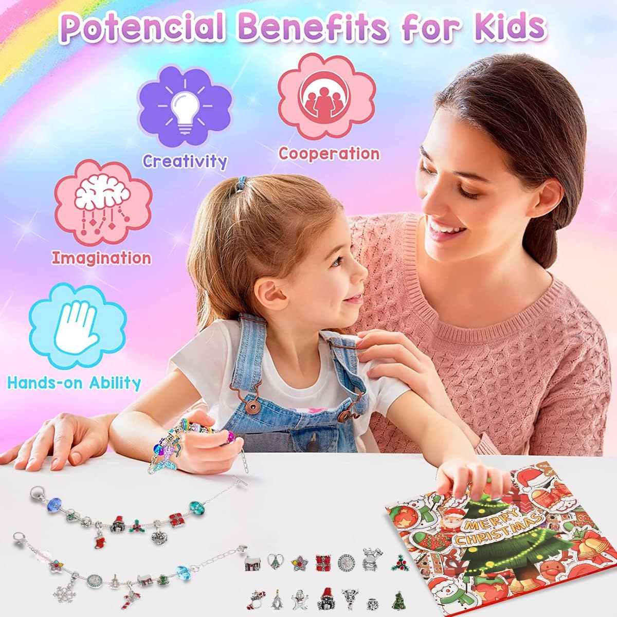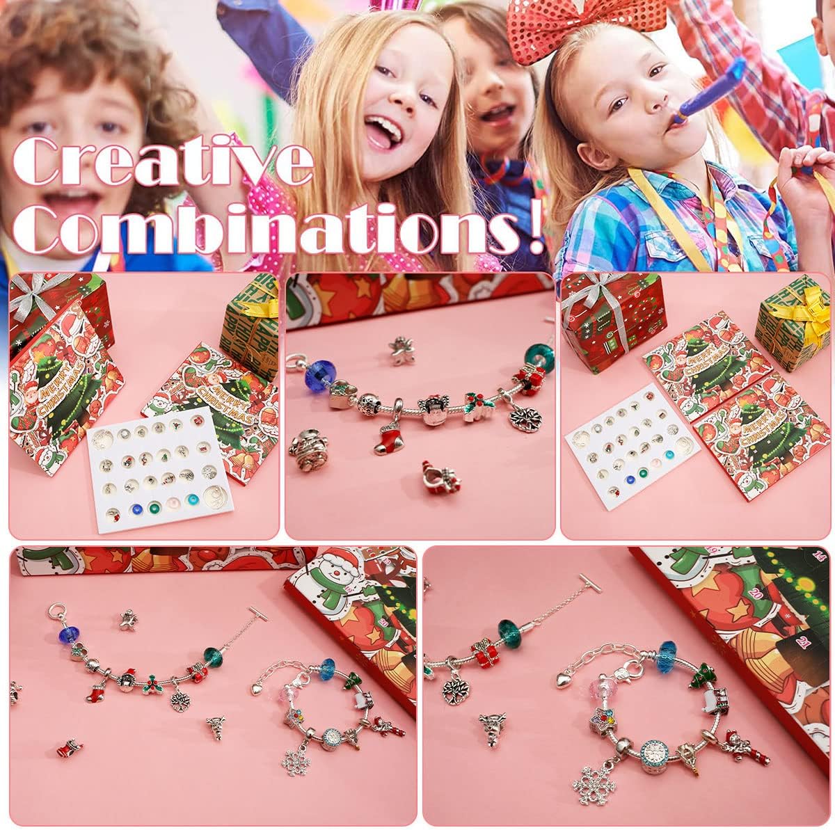 Varietà magica di perline natalizie: questo set di perline natalizie contiene 12 perline di metallo e 4 ciondoli con motivi come renna, albero di Natale, fiocco di neve e stella. Le ragazze possono creare i propri braccialetti festivi con queste perline ricche di dettagli. Due braccialetti regolabili: il set include due braccialetti regolabili in altezza in metallo robusto in diverse lunghezze. Questo set di braccialetti di Natale si adatta comodamente a qualsiasi polso e offre un comfort duraturo. Attività creativa per feste fai da te: perfetta per piacevoli pomeriggi artigianali o compleanni per bambini a tema natalizio. Questo set di perline di Natale favorisce la creatività e rende la creazione di braccialetti personalizzati un'esperienza condivisa. Stimola la creatività e le capacità motorie: i bambini possono creare il proprio braccialetto con ciondoli e braccialetti, combinare colori e provare nuovi design. Questo set di gioielli fai da te supporta lo sviluppo di creatività, concentrazione e abilità artigianale. Regalo di Natale ideale per bambine: ideale come regalo prenatale o attività creativa per ragazze. Con questo set di perline natalizie, i bambini possono creare braccialetti personali non solo per se stessi, ma anche come regalo per gli amici.