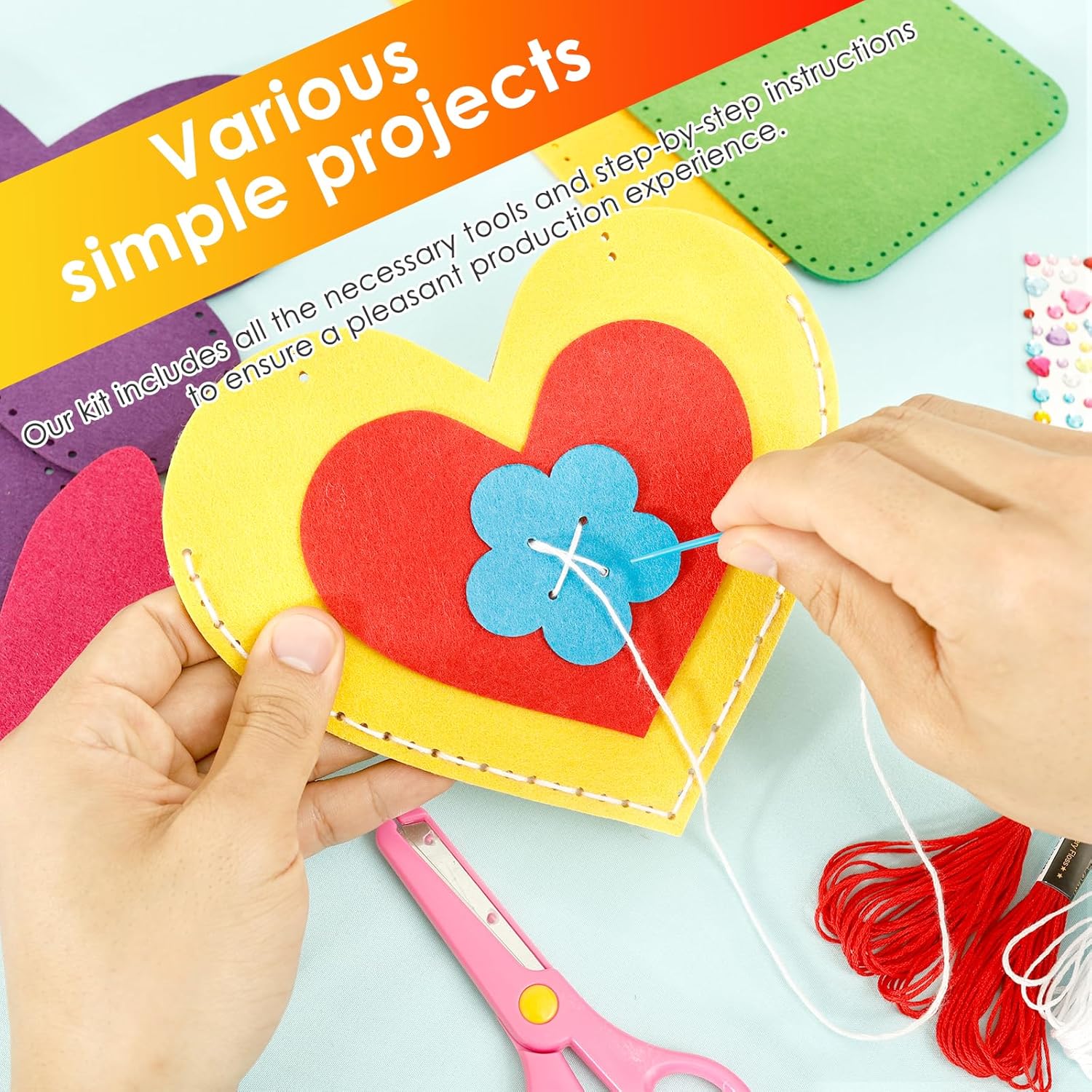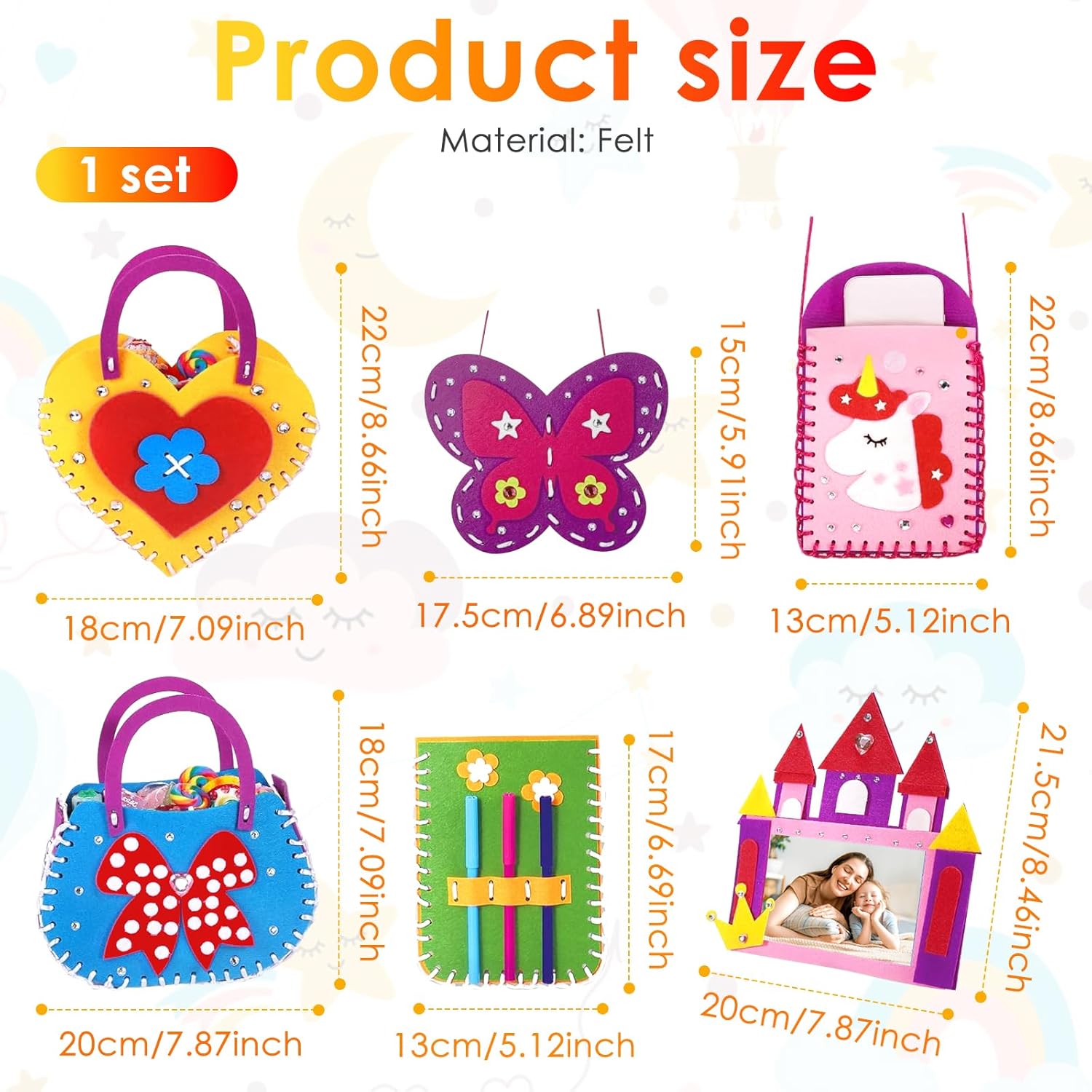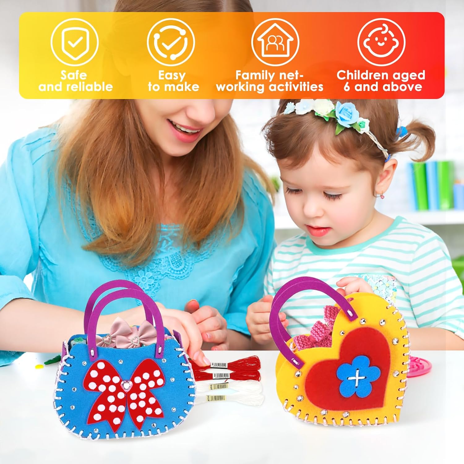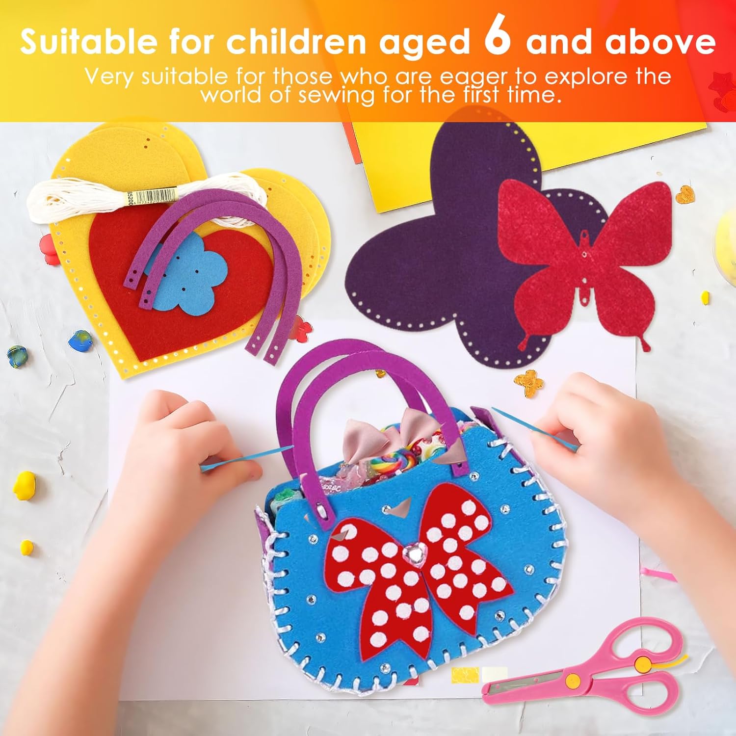 Design sicuro e affidabile: include strumenti adatti ai bambini: aghi in plastica, stampi in feltro pretagliati, consigliati Attività dei legami dei genitori: genitori e bambini possono lavorare insieme a progetti di cucito, creare bellissimi mestieri, condividere idee e sostenere la creatività reciproca, testare il tempo insieme per diventare più significativo 【 Misurazione libera e facile da usare】 Nessuna colla disordinata, forbici da taglio o configurazioni complicate. Il kit dispone di forme pretagliate e chiare istruzioni grafiche per garantire una piacevole esperienza pratica per bambini e principianti Ideale per 6 anni e oltre: appositamente progettato per bambini a partire dai 6 anni, in particolare per i nuovi nel cucito. Gli aghi in plastica di grandi dimensioni garantiscono sicurezza e permettono ai bambini di costruire le abilità con fiducia 【Kit completo per bambini】Include 6 progetti di cucito per principianti con tutti gli strumenti e istruzioni passo passo necessarie per l'apprendimento senza stress. Incoraggia una divertente esperienza di artigianato, mentre aiutano i bambini a stare lontano dai dispositivi elettronici