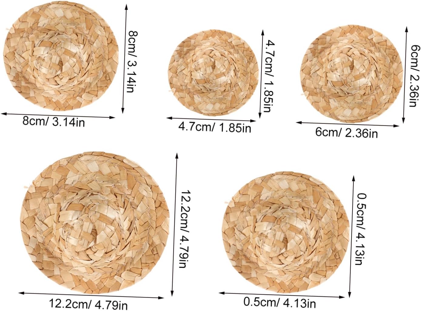 Texture di paglia naturale: il materiale di paglia autentico offre un fascino tattile e visivo, esaltando la bellezza naturale delle tue creazioni fatte a mano, piccoli cappelli per l'artigianato, piccoli cappelli per l'artigianato Robusti e leggeri: questi cappelli sono realizzati per essere facili da maneggiare, garantendo che mantengano la loro forma e qualità nel tempo, mini cappelli per l'artigianato, mini ornamenti per la casa Durata affidabile: progettati per resistere alla deformazione, questi cappelli mantengono la loro struttura anche con un uso prolungato, garantendo che i tuoi lavori artigianali rimangano incontaminati, mini cappelli di paglia per lavori artigianali, mini cappelli di paglia intrecciati Fascino in miniatura: questi piccoli cappelli di paglia sono progettati per completare l'artigianato su piccola scala, migliorando l'appeal estetico di case delle bambole, statuette e decorazioni fatte a mano, piccolo cappello intrecciato per animali domestici, piccolo sombrero Ispirazione creativa: il loro design versatile stimola idee creative per l'artigianato, rendendoli adatti a una gamma di progetti, dagli ornamenti festivi agli accessori, cappelli artigianali in miniatura, di mini cappello