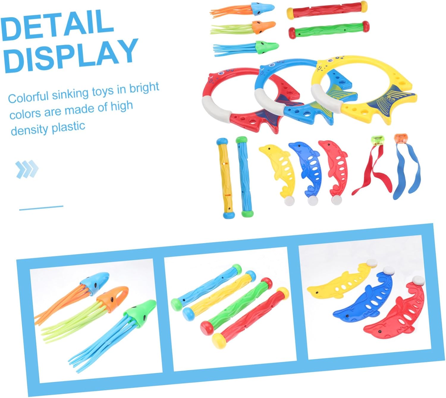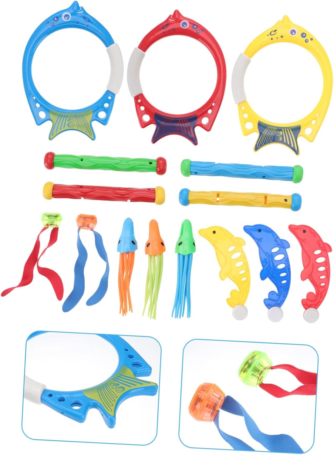Giocattoli per immersioni all'aperto: questo set di giocattoli per immersioni subacquee è composto da 5 diversi tipi prevalenti di giocattoli per immersioni, giocattoli per immersioni per piccoli Giocattolo da nuoto per : un modo eccellente per migliorare le tue abilità di immersione e divertirti con i tuoi amici, giocattolo da nuoto per Giocattoli subacquei per : il design liscio e senza bordi è perfetto per far giocare i in piscina, giocattoli subacquei estivi Giocattolo da nuoto per : giocattoli colorati che affondano in colori vivaci realizzati in plastica ad alta densità, giocattoli da immersione per esterni Giocattolo per il nuoto dei : include 3 anelli per immersioni, 4 bastoncini per immersioni, 4 giocattoli per immersioni a forma di alghe, 3 giocattoli per immersioni a forma di , 3 giocattoli, in totale 17 pezzi, giocattoli per il nuoto