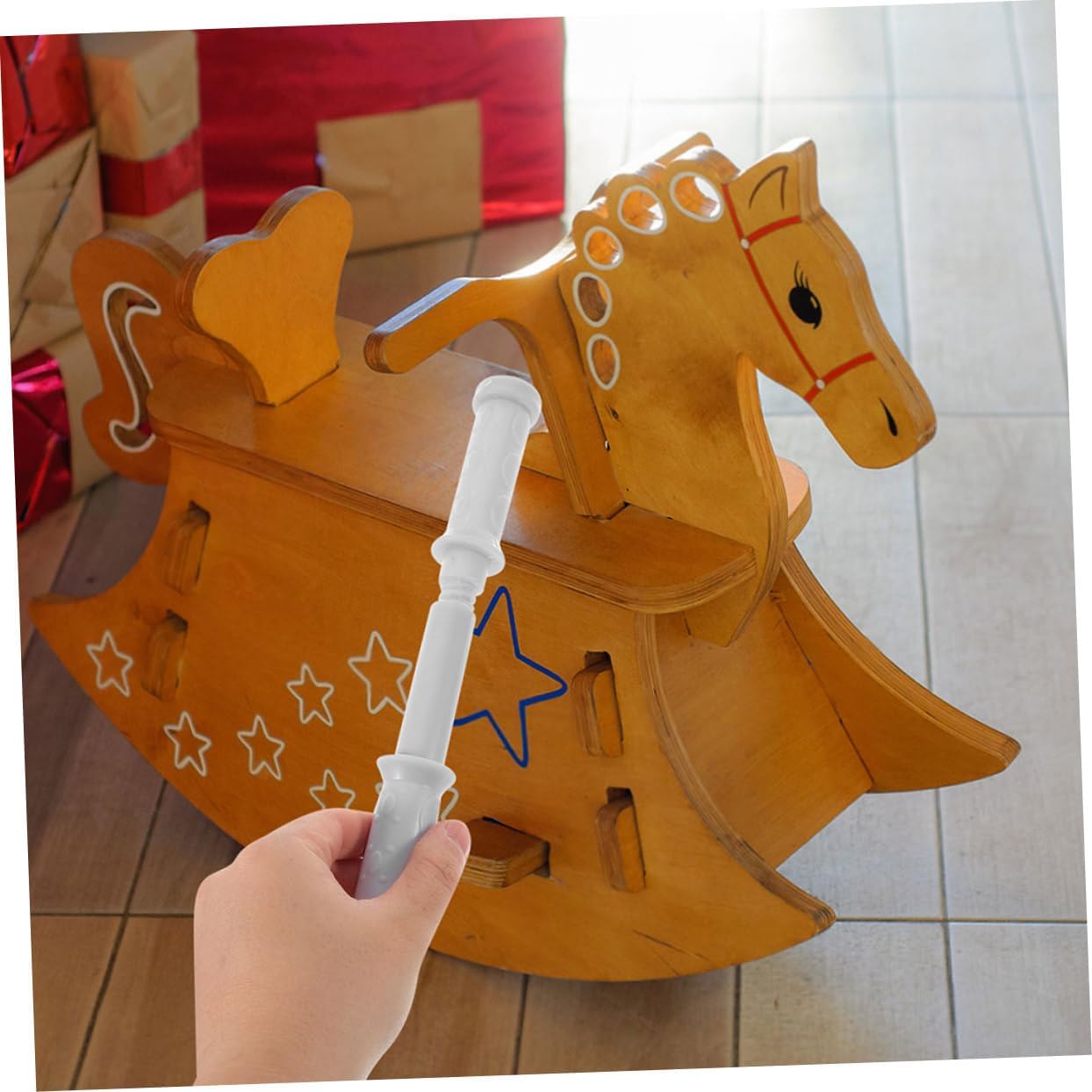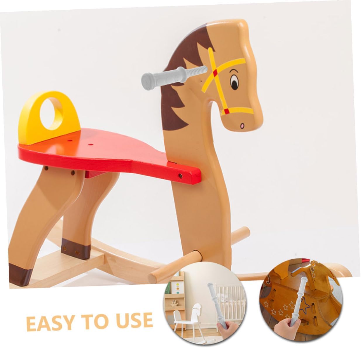 Aggiunta divertente: la maniglia migliora l'esperienza di gioco e aggiunge più eccitazione al cavallo a dondolo di tuo figlio, ai giocattoli per cavalli e alla decorazione di un cavallo a dondolo in legno. Maggiore divertimento: la maniglia aggiunge un ulteriore livello di divertimento al cavallo a dondolo di tuo figlio, rendendo il tempo di gioco più interattivo e divertente. Cavallo a dondolo per , giocattolo a dondolo Miglioramento divertente: la maniglia migliora l'intera esperienza di gioco e fornisce più eccitazione e cavallo a dondolo per il tuo bambino, sul cavallo a dondolo per i più piccoli o sulla maniglia sostitutiva per cavalli da equitazione Installazione semplice: la maniglia è facile da installare e consente una configurazione rapida e comoda, così il tuo bambino può iniziare subito. cavallo a dondolo per neonate, pezzi di ricambio per cavalli da equitazione Sicuro e affidabile: questo manico in plastica resistente con filettatura offre una presa sicura e garantisce la sicurezza del tuo bambino durante la guida. Decorazione sedia a dondolo, cavallo a dondolo in legno