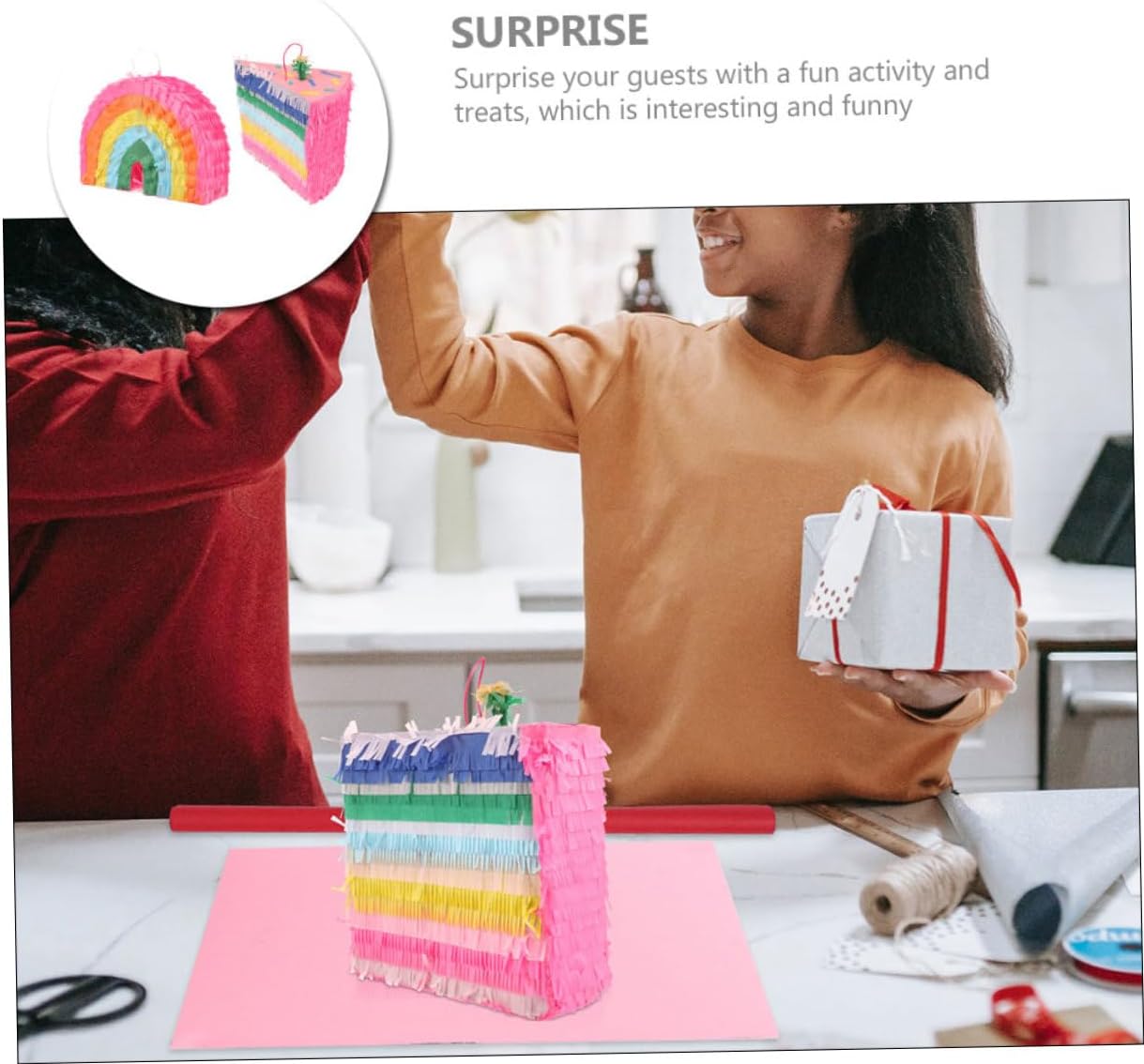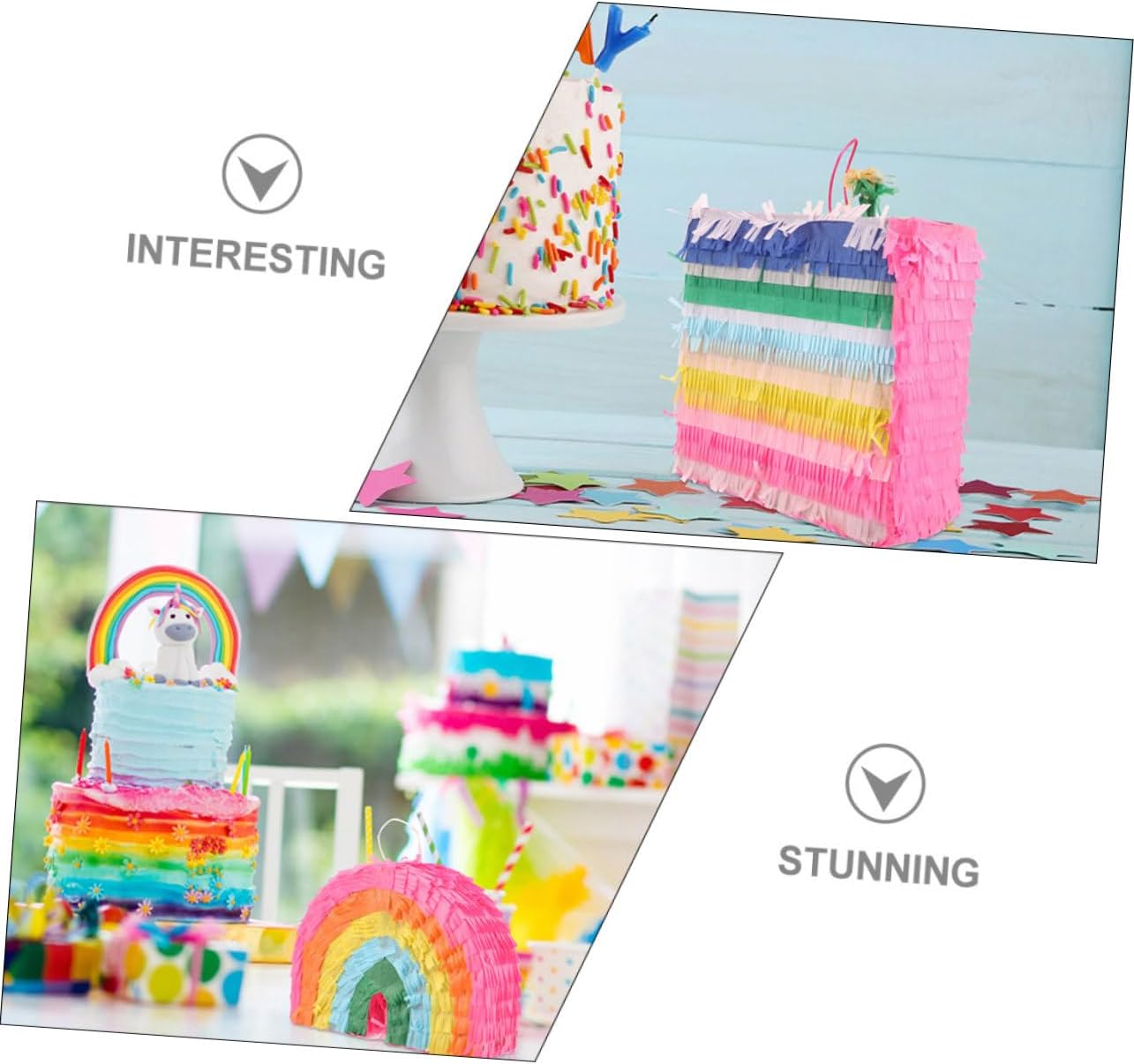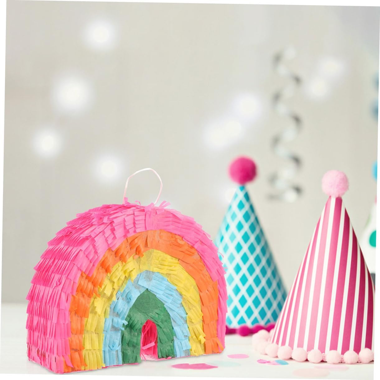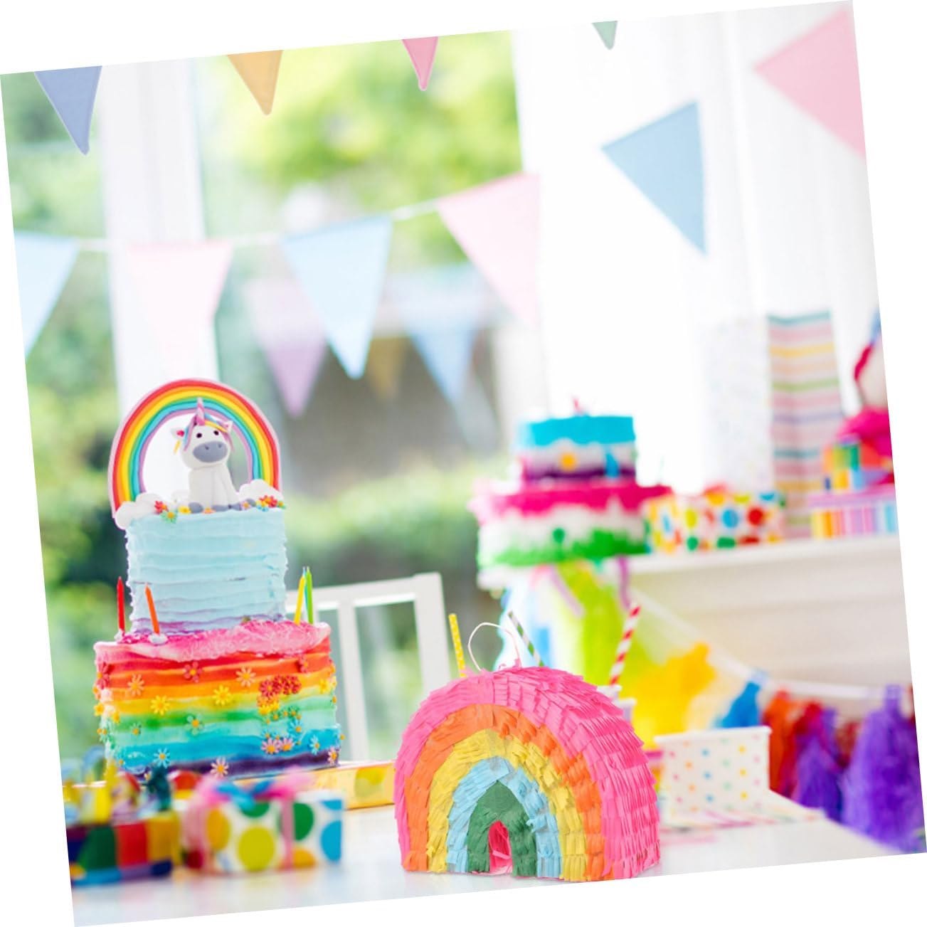 Pignatta per feste di compleanno: rallegra la tua festa con questa pignatta, creando un'atmosfera per la tua festa, decorazioni da appendere per il compleanno Giocattolo pignatta per feste: il design divertente e accattivante sarà il preferito di persone di tutte le età e renderà più piccanti le tue feste, decorazioni da appendere per feste Pignatta giocattolo riempita: il tradizionale giocattolo della pignatta è realizzato a forma di torta e arcobaleno, che adatta molto bene alle feste e alle decorazioni colorate per le feste di compleanno Piñata per la festa: gioca a questo gioco con la famiglia, gli amici e i colleghi di lavoro, ti divertirai un sacco, piñata adorn Decorazione per feste di compleanno: perfetta per feste e festival, da usare per portare ai tuoi ospiti e alle tue famiglie divertimento e sorpresa, giocattolo di carta piñata