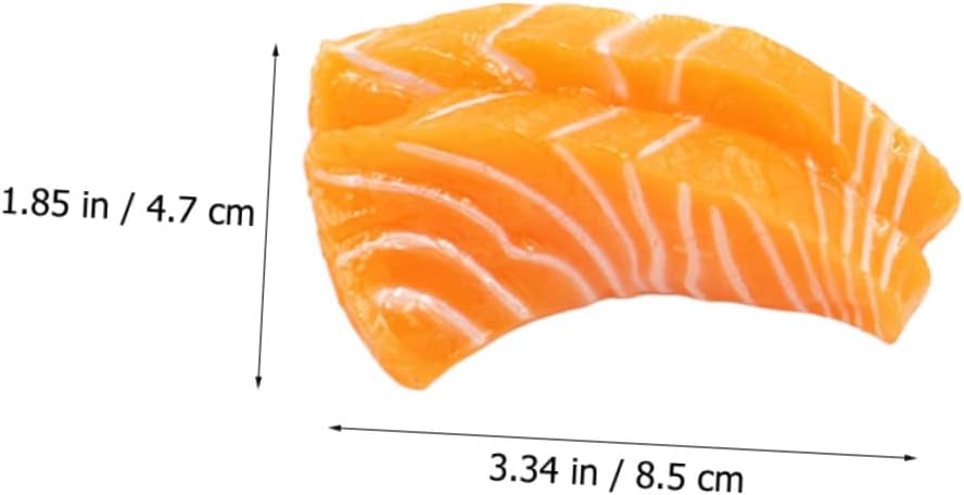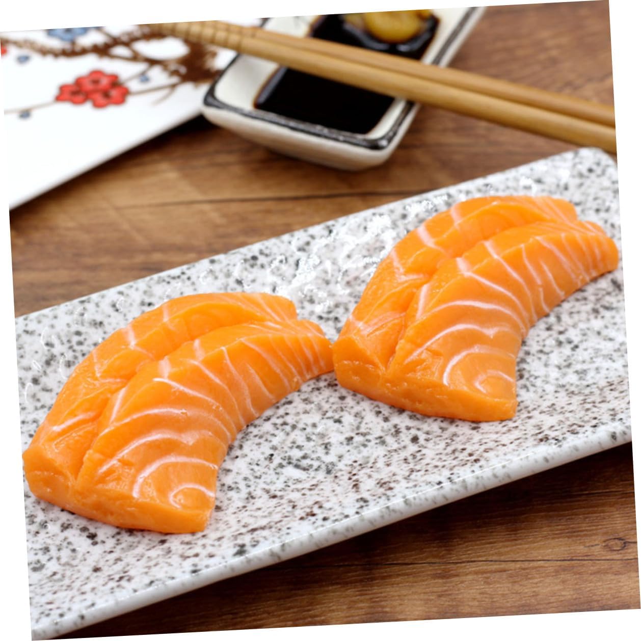 Filetto di salmone: ottima decorazione per centri commerciali, case, snack bar o altri luoghi, salmone finto Decorazione a forma di pesce per la casa: il colore è di alta qualità e può essere riutilizzato, giocattolo di sashimi di salmone Salmone artificiale: puoi usare questi modelli di fette di salmone insieme ad altri ornamenti per creare una perfetta disposizione della scena, decorazione di salmone Salmone artificiale per esposizione di cibo: simulazione di alto livello, realistico e decorativo, migliore effetto decorativo, salmone Salmone realistico: ha un design semplice, ma molto pratico nell'uso, dandoti un salmone da gioco
