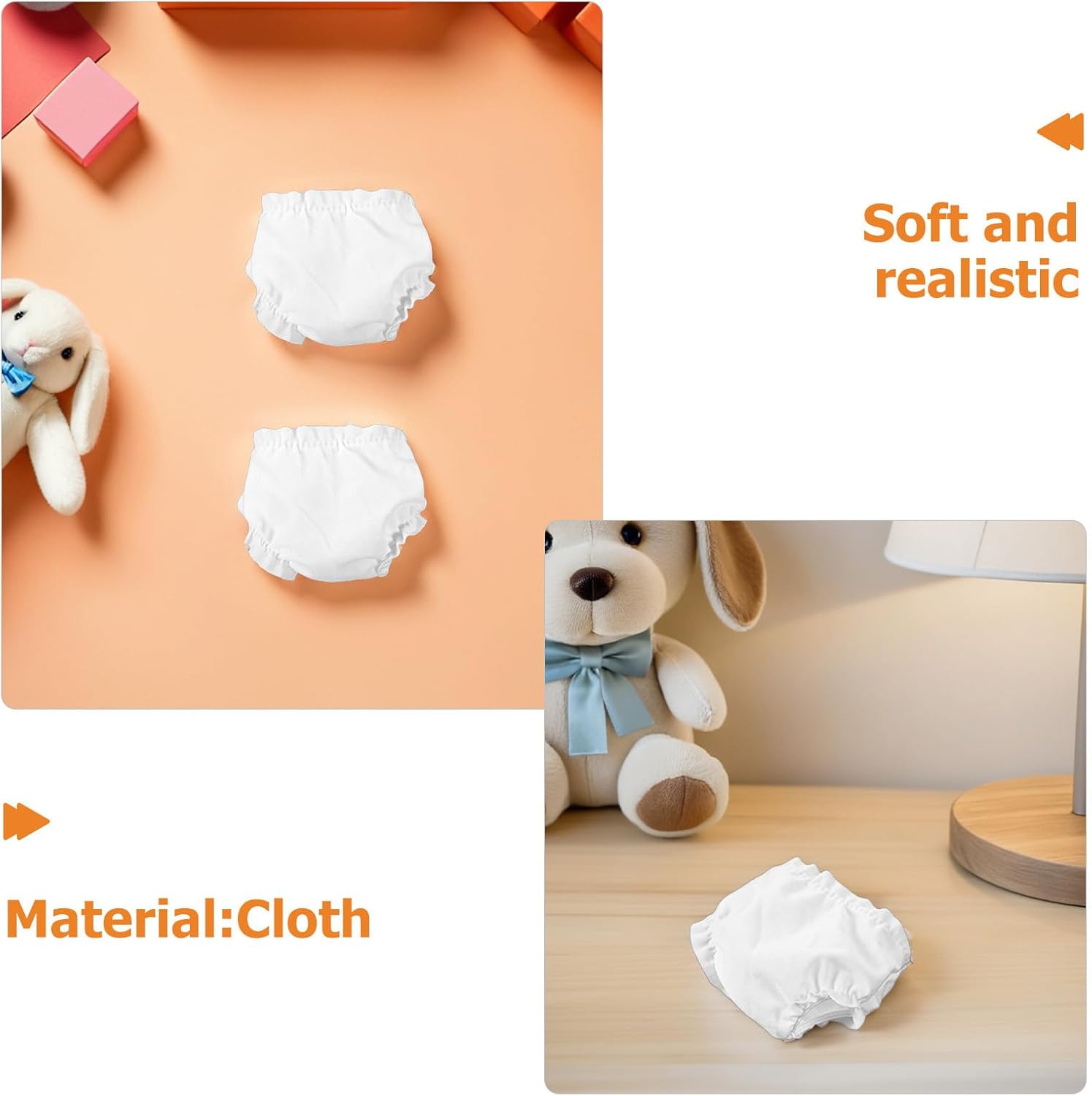 Ideale per il gioco di finzione: questi pannolini per bambole aggiungono dettagli realistici agli accessori della casa delle bambole, consentendo ai bambini di divertirsi con scenari di gioco mentre vestono le loro bambole appena Comodo: dotato di biancheria intima elastica per bambole, ogni pezzo garantisce comfort e flessibilità per le bambole, rendendo i pannolini per bambole per bambini adatti al gioco di ruolo per tutto il giorno senza causare fastidio alla pelle Set completo di varietà: questo set include pannolini per bambole, per vestire le tue bambole o accessori per l'abbigliamento degli animali di peluche, mantenendo ogni momento di gioco fresco e coinvolgente Design autentico: i pannolini e le mutande per mini bambole sono realizzati per assomigliare alla biancheria intima delle bambole, migliorando l'autenticità dei pannolini per bambole e stimolando i giochi fantasiosi Facile da pulire: questo set di biancheria intima per bambole può essere facilmente pulito, supportando il gioco sicuro in bagno e insegnando ai bambini attraverso il divertimento degli accessori da bagno per bambole