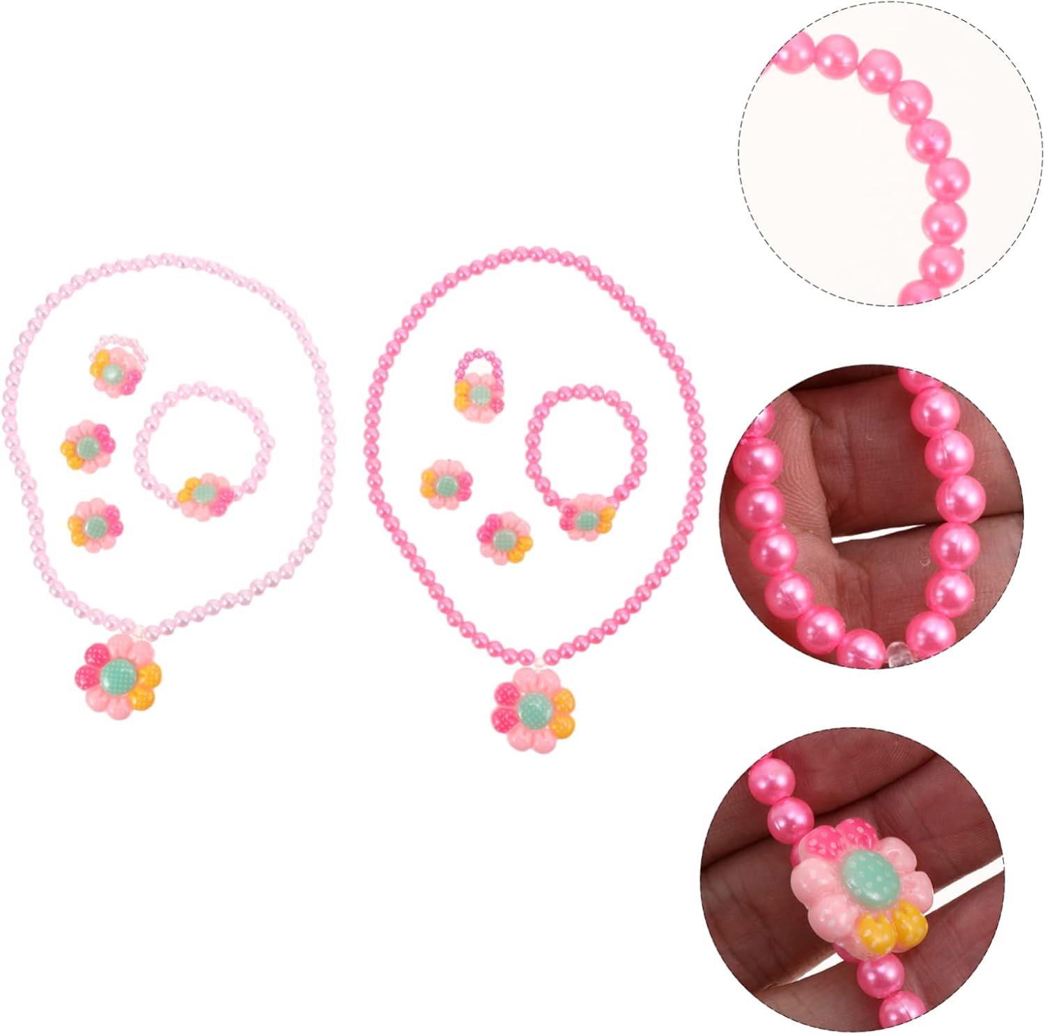 dei pacchetti 2 x set di gioielli per Caratteristiche - Materiale: Braccialetto di perle di plastica. - Dimensioni: circa 10,00X2,00X2,00 cm/3,93X0,79X0,79 pollici Collana con fiori. - Adatta per feste, banchetti o per l'uso quotidiano, cattura immediatamente l'attenzione. Dolce collana. - Collana di perle di assortito - È perfetto per l'abbigliamento dei tuoi e regalerà loro un indimenticabile. Gioielli per bambine. - I gioielli con design floreale dei cartoni animati possono essere una scelta come per i tuoi amati oggetti di scena fotografici. - Il design speciale con decorazioni dettagli squisiti rende questo set di collane un accessorio di gioielleria delicato e creativo. - Questo set di gioielli Flower Jewelry potrebbe ai vostri una meravigliosa esperienza di utilizzo. Descrizione della merce Accessori per gioielli Stai cercando accessori per da ragazza graziosi ma convenienti? Stai cercando uno strumento robusto e affidabile che possa svolgere più lavori contemporaneamente? Se sì, non cercare oltre! Il set di gioielli in plastica per deve soddisfare le tue esigenze. Collana di fiori È una delle migliori per te