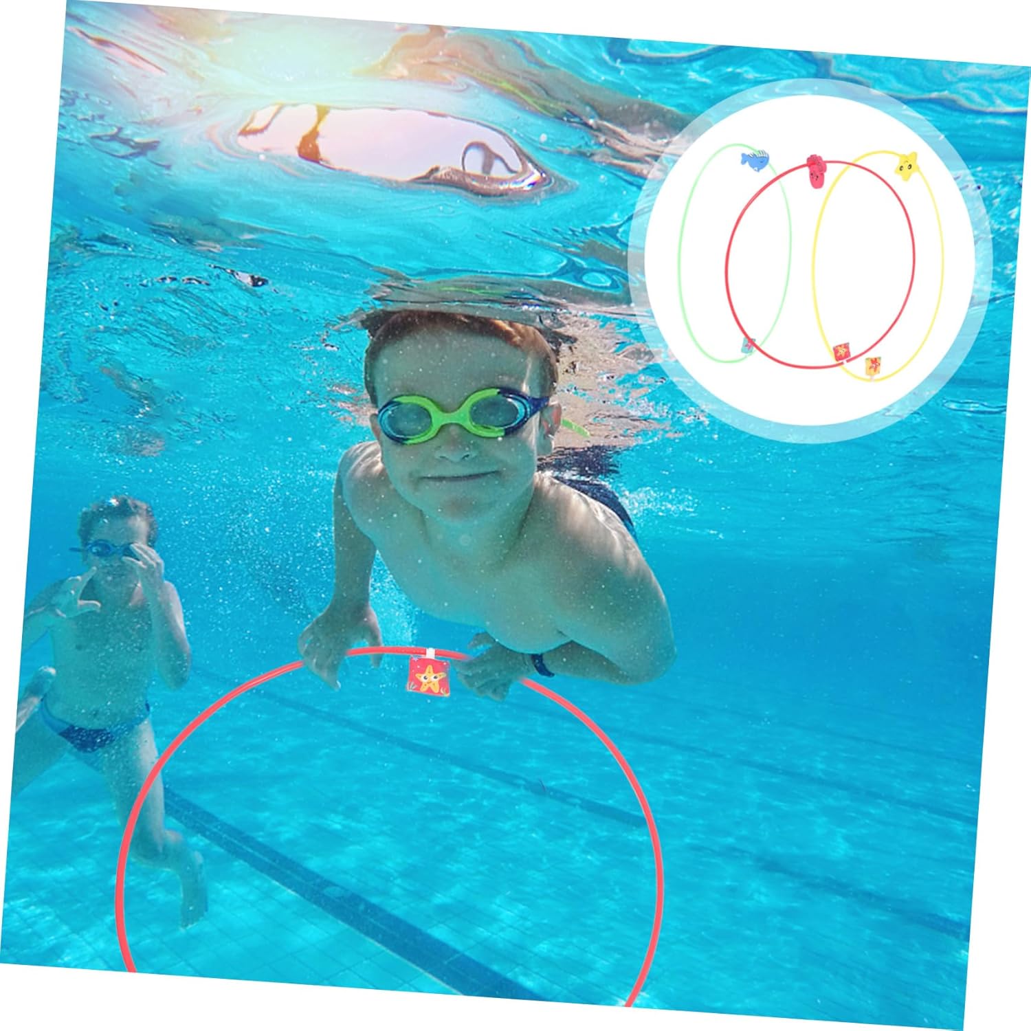 Giocattoli da piscina per bambini 4 agli 8 anni: realizzati con , questi giocattoli non hanno sbavature e non danneggiano la pelle dei bambini durante il gioco, cerchi da tuffo in piscina Anelli passanti per l'acqua: i bordi sono lisci e facili da afferrare, non devi preoccuparti di ferire le dei tuoi bambini, giochi di immersioni per bambini Giocattoli da piscina per immersioni: il design ad anello offre stabilità e supporto per i principianti che imparano a immergersi, anelli da piscina per immersioni Giocattolo subacqueo: mentre divertono, i bambini possono anche godersi il divertimento in piscina e migliorare le loro abilità natatorie, giocattolo subacqueo portatile Giocattoli subacquei: questo giocattolo subacqueo è e, può essere utilizzato con sicurezza, i bambini possono divertirsi per ore con le immersioni, ottimo per feste in piscina e giochi in famiglia, giocattoli subacquei per bambini