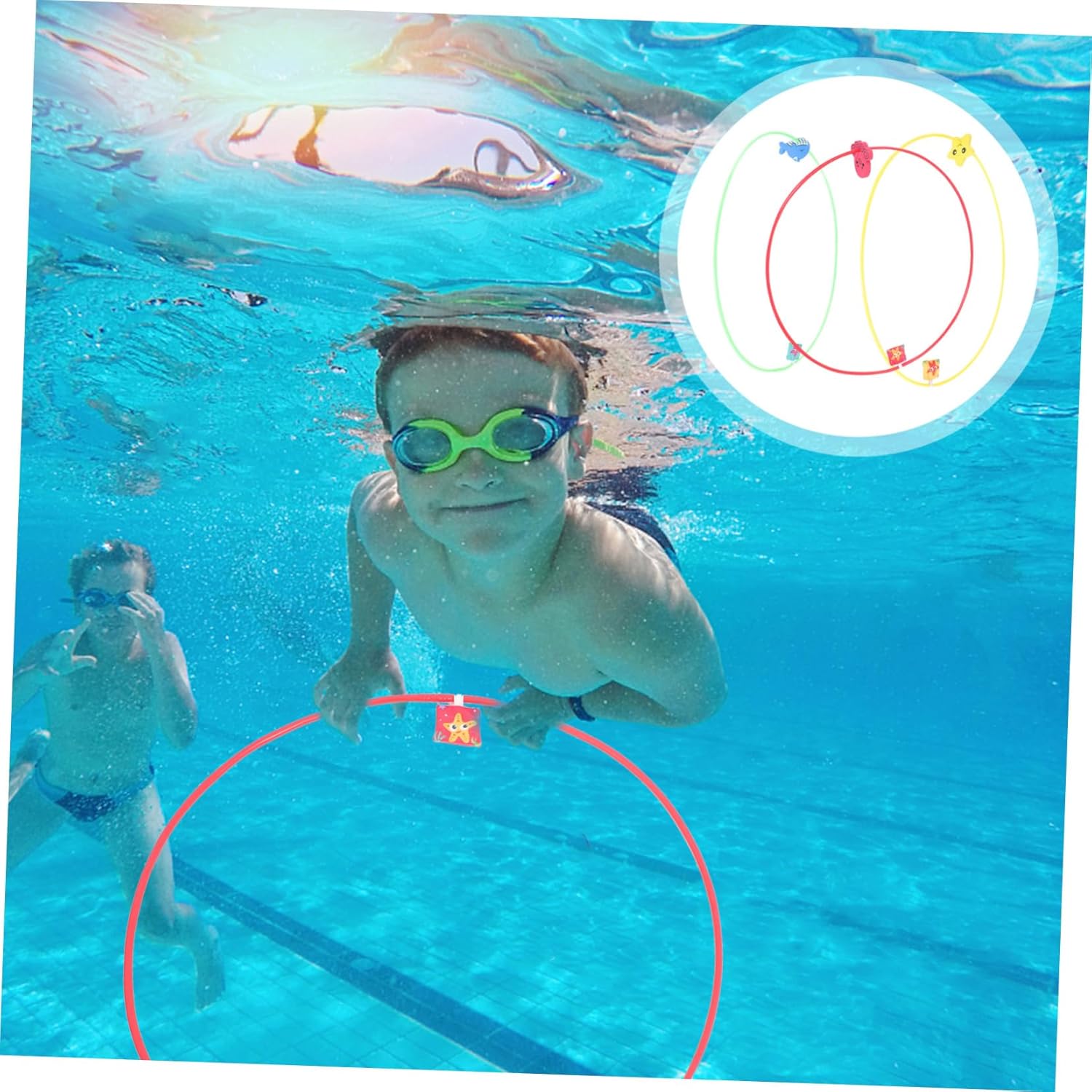 Cerchi per in piscina: sono anche il estivo perfetto per bambini, nipoti, ragazzi, ragazzi, ragazze e studenti di nuoto. Anelli da immersione per bambini: i vivaci possono aiutare a stimolare la vista del tuo bambino, incoraggiandolo a toccare ed esplorare, giocattoli da immersione per bambini Anelli da piscina: questo giocattolo per immersioni è perfetto per le feste in piscina e i giochi in famiglia. i bambini possono usarlo con sicurezza e divertirsi per ore immergendosi. Anelli da piscina per bambini che si immergono: vivaci e forme gradevoli possono aiutare a stimolare la vista del tuo bambino, incoraggiandolo a toccare ed esplorare, giocattoli per bambini che si immergono Anelli da nuoto per bambini: il design dell'anello offre stabilità e supporto per i principianti che imparano a immergersi, cerchi da nuoto subacqueo