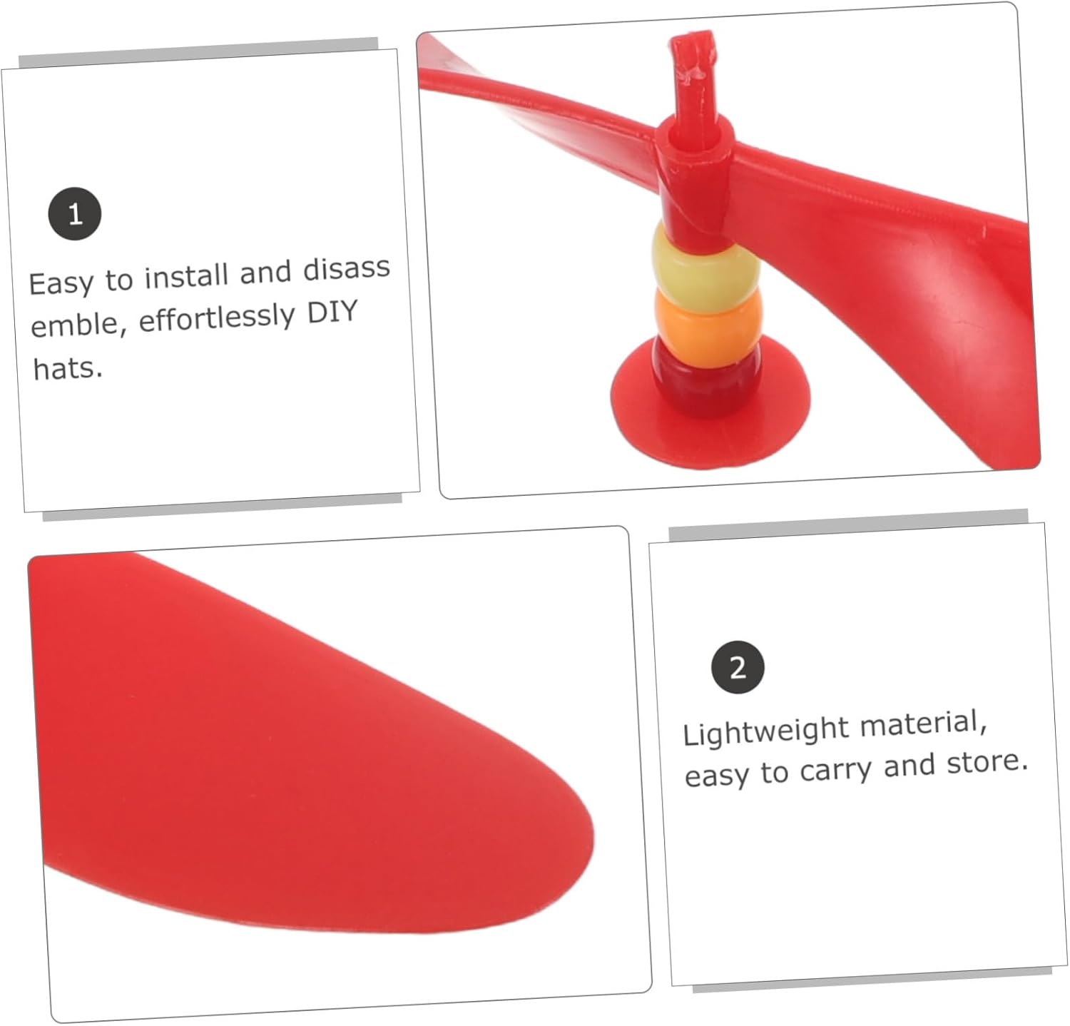 Comfort e struttura leggera: progettati con eliche in plastica leggera, questi accessori per eliche per cappelli garantiscono una vestibilità comoda per un uso prolungato durante attività all'aperto, in viaggio o a scuola, accessorio per cappello a forma di libellula, puntale a spirale per cappellini da baseball Compatibilità universale con il cappello: progettato come accessorio per montata sul cappello, si adatta alla maggior parte dei cappellini da baseball e dei modelli di aerei fai da te, rendendo lo stile dell'elicottero montato sul cappello facile per tutti, eliche di plastica, cappello con Leggero per stili di vita attivi: queste eliche in plastica sono perfettamente adatte per giochi all'aperto, sport, campeggio o viaggi, rendendo ogni simpatica per cappello un accessorio comodo e portatile, per cappello novità, per cappello a forma di libellula Per la creatività fai da te: decora il tuo berretto da baseball o l' della tua bici con questi giocattoli con staccabili, incoraggiando il gioco fantasioso e l'espressione artistica personale, giocattolo per cappelli, giocattolo per elicottero Installazione fai da te semplice: l' del cappuccio staccabile semplifica l'aggiornamento immediato del cappello a del bomboniera, consentendo la creatività nei cappelli fai da te per ogni evento, per elicottero per cappelli, elicottero libellula staccabile