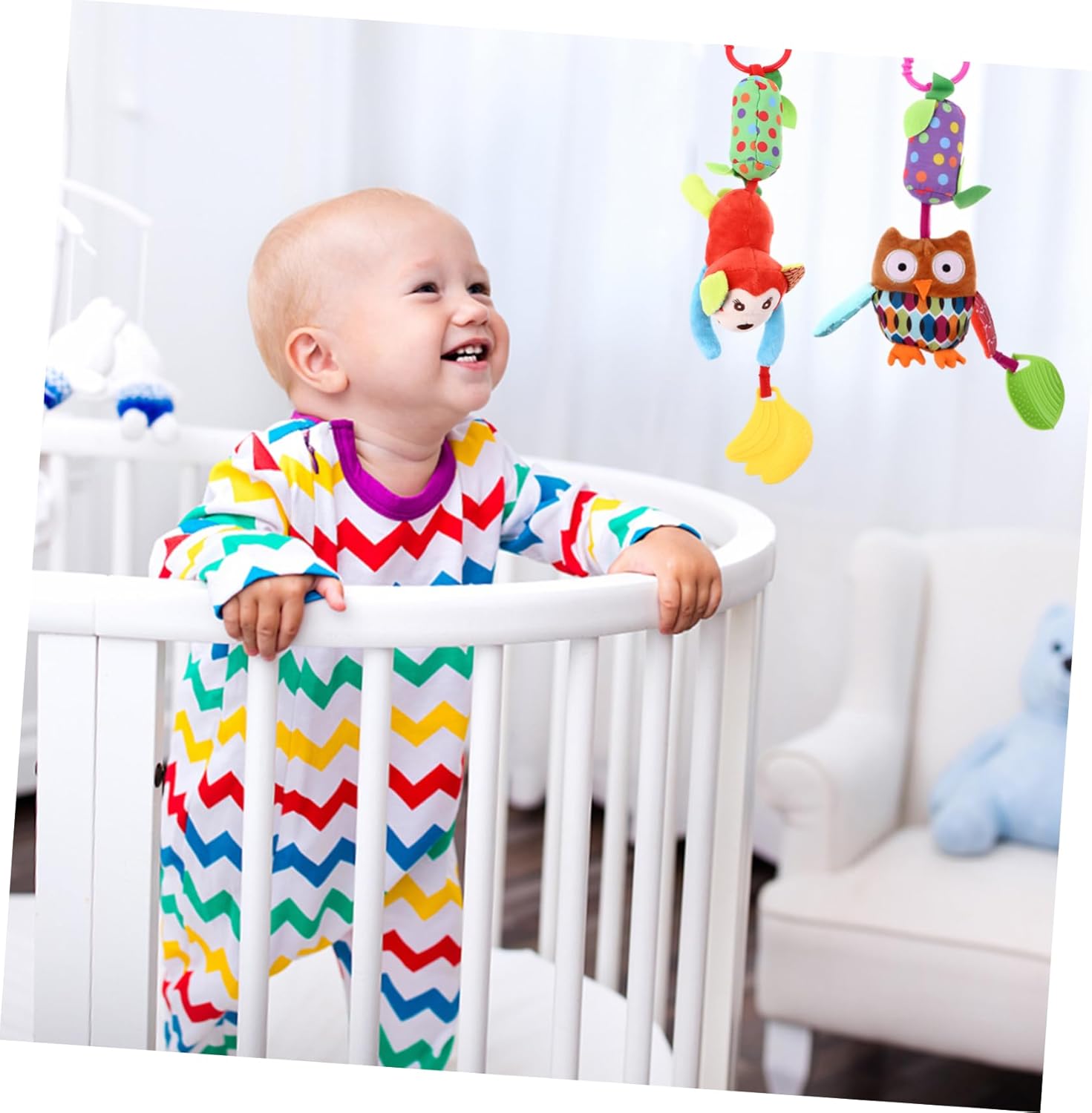 Giocattoli per : ha un metodo di applicazione semplice, è facile da mettere nel passeggino ed è comodo da usare, educativo Appeso: è realizzato con materiali sicuri e delicati, e confortevole, e da afferrare per Sensoriale per : questo con ciondolo per è molto adatto come per qualsiasi futura o neonato, giocattoli Da appendere al letto: puoi questo pratico e sicuro ciondolo ai tuoi amici con , da appendere al passeggino Per : l'eccellente processo di produzione gli conferisce vivaci e un aspetto vivido, che possono attirare molto bene l'attenzione del , per lettino per