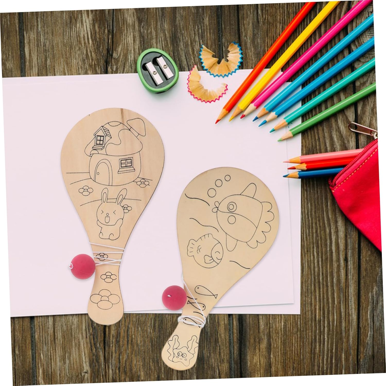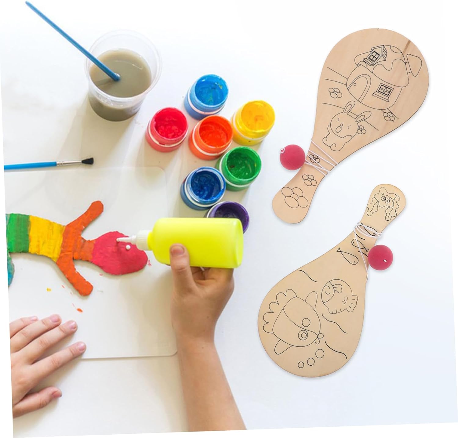 Racchetta per - materiale sicuro e in legno, utilizzato da molto tempo, palline da pong colorate Paddle ball in legno - con una palla, legata da una corda, che è interessante da giocare, paddle ball Divertente foglio per : design a forma di racchetta, vari modelli vuoti, fai da te e creativo, assortimento di pagaie Pagaia per : un giocattolo educativo per coltivare l'interesse dei per il disegno e sviluppare le capacità di apprendimento, comunicazione e creazione, yoyo in legno Decorazione arrugginita: lavorazione squisita, liscia senza ferire le , graffiti per