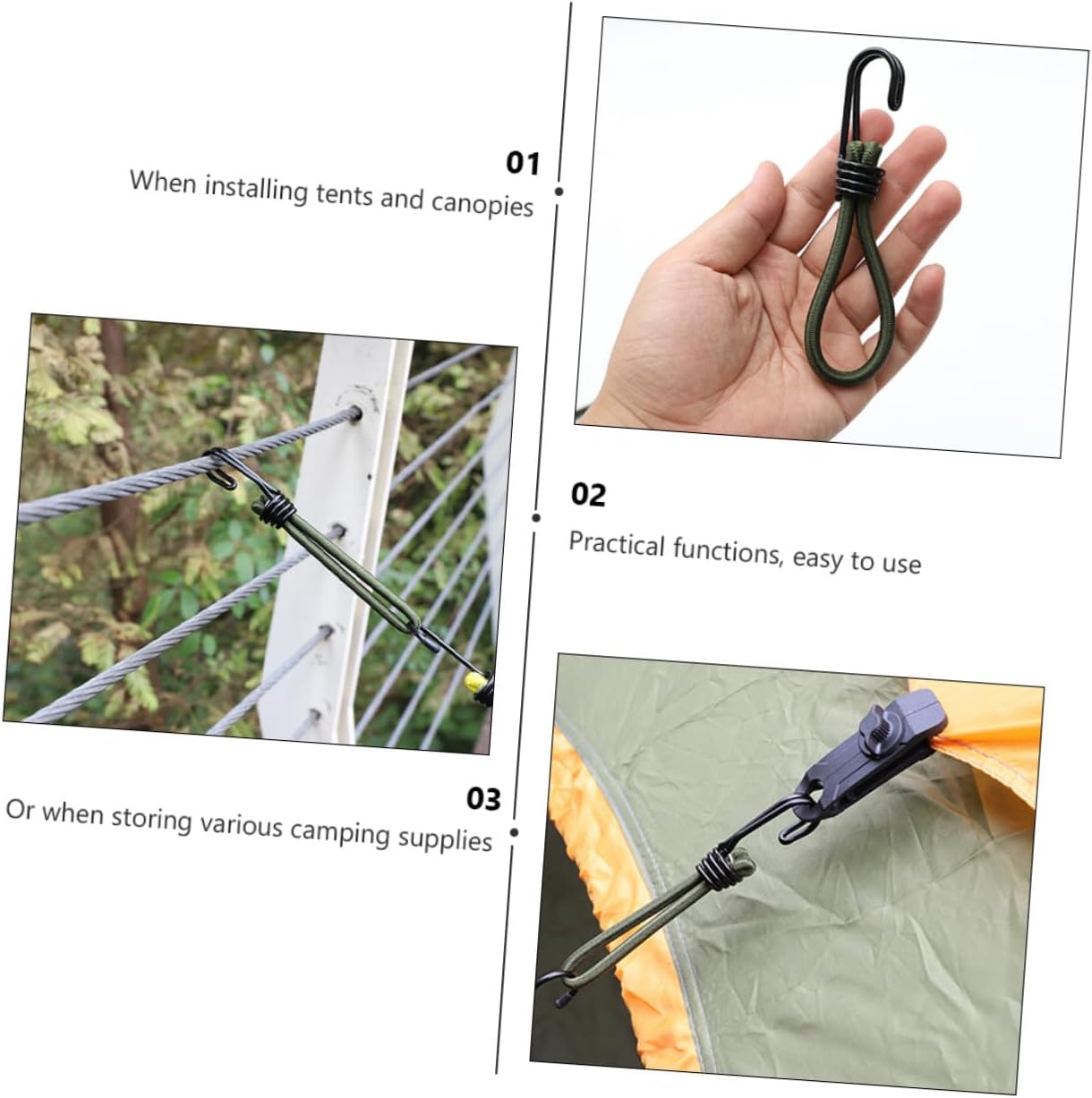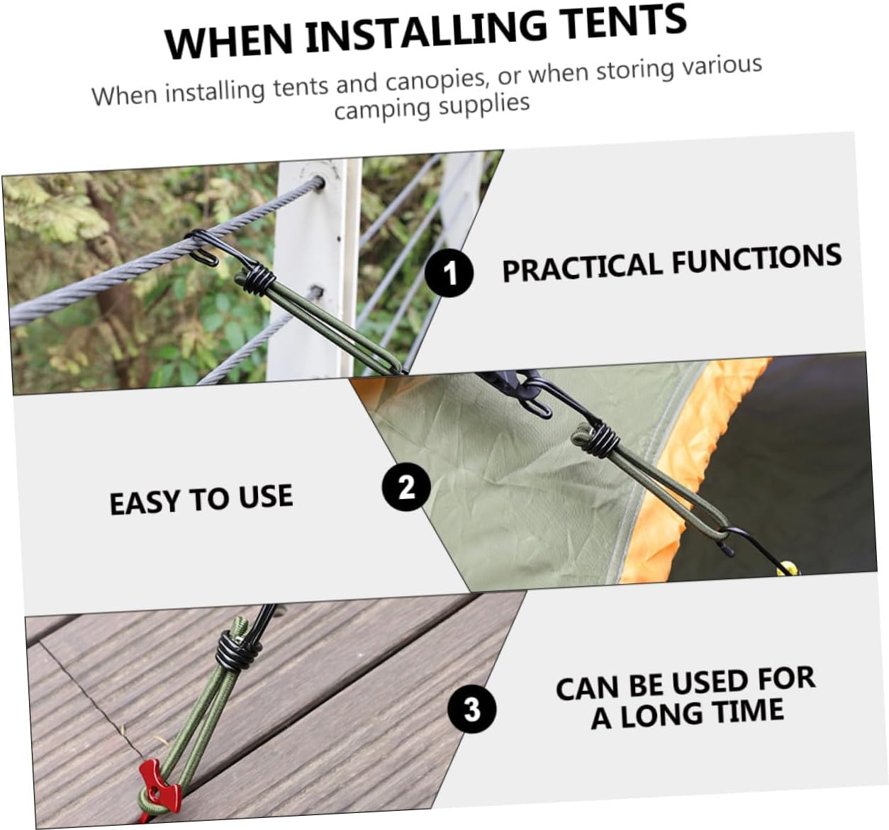 Fibbia da campeggio: può essere utilizzata per fissare il carico di biciclette, motociclette, sedili posteriori elettrici, impedire la caduta di oggetti, fibbia a gancio Forniture da campeggio: un valido aiuto per il campeggio all'aperto per fissare le tende in modo saldo e stabile, gancio per cordino di fissaggio Gancio per da campeggio: la corda è realizzata in lattice, che è molto , non preoccuparti di romperla perché la corda sopporta troppa tensione, la nostra corda elastica può sopportare una di trazione maggiore rispetto alla normale corda elastica, gancio per corda da Ganci per tende da campeggio: regolazione rapida e semplice, garantiscono lunghezza e tensione esatte per fissare , facili da usare e installare, quindi si prega di utilizzare il gancio per tende da campeggio all'aperto Gancio per corda di trazione: un set di 6 corde elastiche con ganci, quantità sufficiente per soddisfare le tue esigenze quotidiane, accessori da campeggio