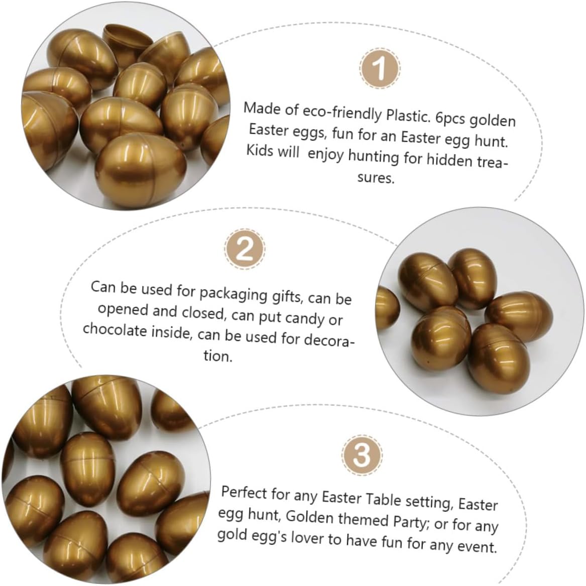 Uova giocattolo - realizzate in plastica ecologica, 6 uova di pasqua dorate, divertenti per una caccia alle uova di pasqua, i si divertiranno a cercare tesori nascosti, uova giocattolo Uova di pasqua vuote: nascondile in luoghi inaspettati per creare una sorpresa divertente! i cercheranno in casa o in giardino le uova di pasqua dorate, giocattoli speciali Giocattoli per riempire le uova di pasqua: possono essere usati per confezionare regali, possono essere aperti e chiusi, possono contenere caramelle o cioccolato all'interno, possono essere usati per decorazioni, giocattoli a forma di uova Uova di pasqua da riempire per : riempibili di colore oro lucido, perfette per pasqua, riempile con sorprese e dolcetti, uova di pasqua con giocattoli Giocattoli pasquali per piccoli: non solo sono vuoti, ottimi per nascondere la pasqua, ma sono anche perfetti per dipingere, come le uova giocattolo