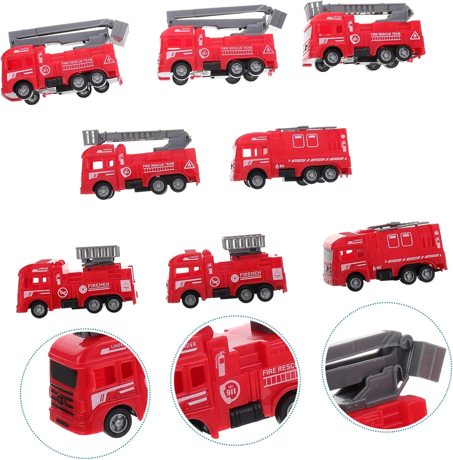Giocattolo per camion dei pompieri per bambini: giocarci con i bambini aiuta a promuovere le relazioni genitore-figlio e la loro capacità di cooperazione occhio-mano, mini camion dei pompieri per bambini: può sviluppare l'immaginazione dei bambini e coltivare la loro capacità di coordinazione occhio-mano, giocattoli per camion dei pompieri Giocattolo per bambini: con una lavorazione squisita, questi giocattoli sono sicuri e trasportabili. Giocattoli educativi per bambini: facili da giocare, basta tirarli indietro e la macchina partirà automaticamente, modelli di camion dei pompieri di camion dei pompieri: un set di 8 interessanti giocattoli di camion dei pompieri, sufficienti per far giocare i bambini, per bambini