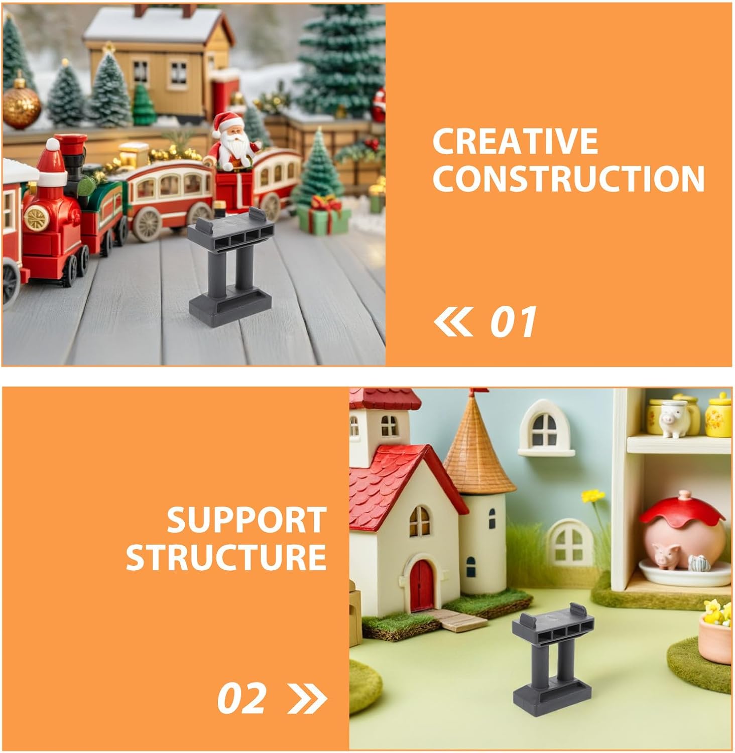 Costruzione di ferrovie: i bambini possono creare binari sopraelevati e ponti dinamici utilizzando materiali per binari ferroviari e blocchi di binari ferroviari per promuovere le capacità di pianificazione Collegamenti robusti e sicuri: i supporti dei binari del treno e il blocco di supporto del ponte del treno sono progettati per una maggiore stabilità, fornendo una solida base per i binari del molo del ponte durante il gioco vivace Design: realizzati con bordi, questi supporti per binari del treno giocattolo assicurano che le mani dei bambini siano protette mentre sistemano i blocchi dei binari del treno o i pezzi del molo giocattolo Apprendimento visivo e gioco con i colori: i vivaci supporti per binari in plastica promuovono il riconoscimento dei colori e stimolano l'interesse, rendendo la costruzione di supporti per binari di treni giocattolo più educativa e divertente Compatibilità flessibile: si perfettamente con la maggior parte degli accessori per treni per bambini e dei set di binari per treni da costruzione, aumentando le possibilità di gioco fantasioso e diverse configurazioni di binari