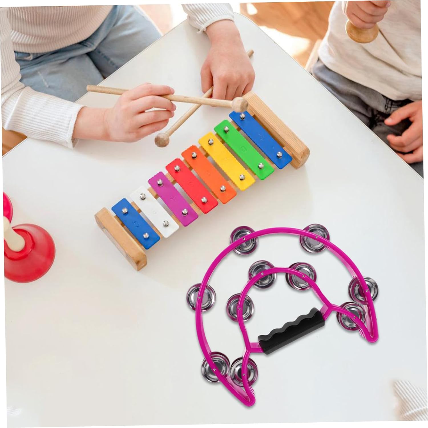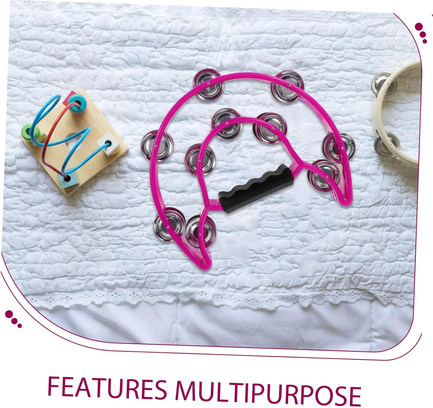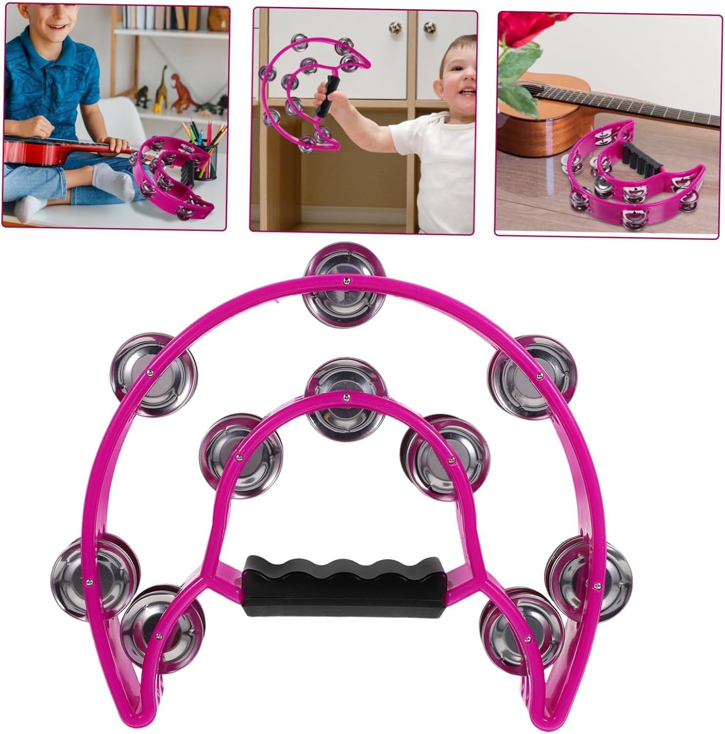 Giocattoli con campanelli da festa: il tamburello è per coloro che amano le percussioni, la musica e la danza, può anche essere utilizzato in una varietà di contesti, tra cui , bande e orchestre, tamburello a forma di battito Tamburello per strumento musicale: ha un aspetto eccellente e può essere utilizzato come decorazione per la casa, ornamenti decorativi da collezione, tamburello scosso a mano Tamburelli per feste: multiuso, il giocattolo a campana può essere utilizzato anche come palcoscenico per spettacoli all'asilo, strumento a tamburello a mano Strumento sonoro portatile: il prodotto sarà un valido aiuto quando avrai bisogno di sfruttarlo a lungo in un modo, strumenti musicali Strumento musicale: puoi usare il campanello portatile per creare un suono nitido e aggiungere un'atmosfera piacevole con i tuoi amici, tamburello musicale per feste