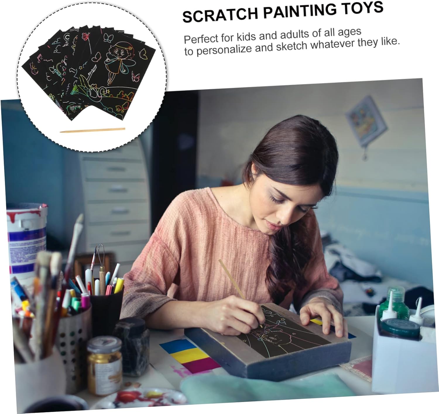 Da grattare: questo set stimola l'immaginazione attraverso un metodo semplice e , consentendo ai di essere coinvolti nella creazione e coltivare un artista, di bomboniere Carta da graffiare: pittura fai da te con graffiti colorati, aumenta la capacità pratica dei , aumenta la gioia di , strumento fai da te per graffiti Carte fai da te per : i tuoi possono giocarci in sicurezza, perché sono realizzate con materiali di ottima qualità, carte da raschiare e dipingere Carte da grattare: la nostra carta da grattare è sicura ed ecologica, realizzata in carta di alta qualità, sicura per i , pittura da grattare per Questo kit artistico sarà un'esperienza artistica incredibile insieme ai tuoi , giocattolo per dipingere con i graffi