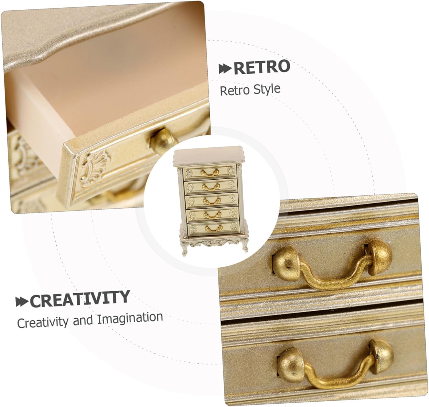Miniatura realistica: cassettiera in scala 1:12 dei mobili vintage, portando autenticità e fascino alle scene della villa della casa delle bambole, mobiletto in miniatura della casa delle bambole, mobiletto con cassetti in miniatura Design realistico: realizzato con dettagli intricati, comò in miniatura 1:12 riproduce un mobile d'epoca, aggiungendo autenticità alle scene della villa della casa delle bambole, igurine dei mobili della casa delle bambole, mini mobiletto portaoggetti della casa delle bambole Versatilità decorativa: per esposizioni case delle bambole, sale giochi per o come decorativo per scaffali e scrivanie, mini mobili per case delle bambole, per case delle bambole in miniatura Materiale affidabile: realizzato in plastica, pezzo mantiene la sua forma e suo colore originali, garantendo un divertimento a lungo termine senza frequenti manutenzioni, arredamento per cassettiere, mobiletto per modelli case delle bambole Scala universale: la scala 1:12 garantisce la compatibilità con un'ampia modelli case delle bambole, rendendolo facile da integrare in configurazioni esistenti, armadietto portaoggetti per case delle bambole, armadietto in miniatura