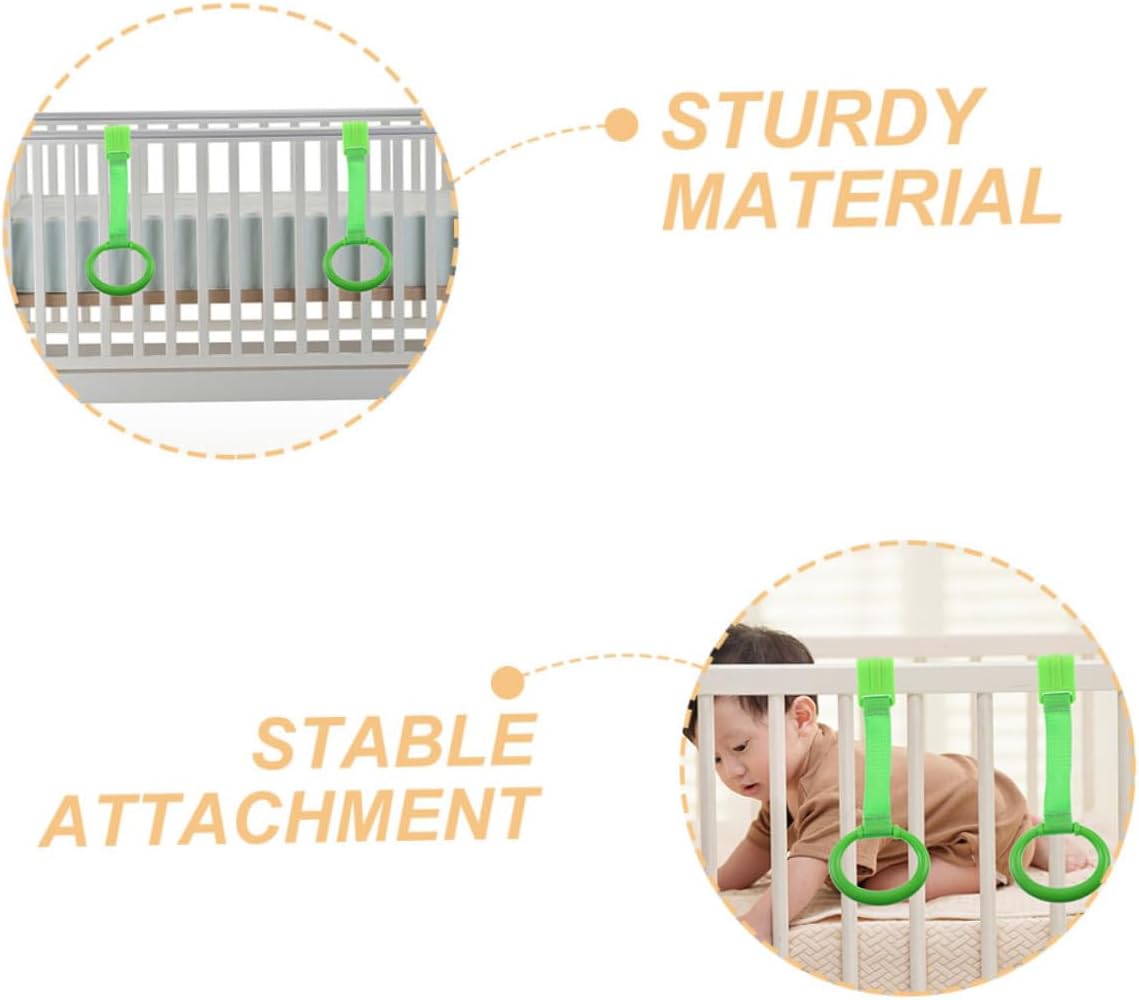 E sicuri: questi anelli sono realizzati con materiali che resistono all'uso regolare garantendo al tempo stesso la sicurezza del tuo bambino. Anelli per appendere, anelli da allenamento Facile da fissare: le clip consentono di fissare facilmente gli anelli a vari mobili per bambini, garantendo un montaggio rapido e sicuro. Migliora la coordinazione: questi anelli aiutano i bambini a sviluppare una migliore coordinazione mentre si esercitano a stare in piedi e a camminare. -Anello scorrevole, anelli in piedi per bambini. Uso regolabile: questi anelli sono adatti per una gamma di mobili per bambini, inclusi box e sponde per il letto. Offrono flessibilità d'uso, giocattoli da box e giocattoli da tirare. Impugnatura comoda: il design ergonomico garantisce che gli anelli siano facili da afferrare per i bambini e fornisce una presa comoda e sicura