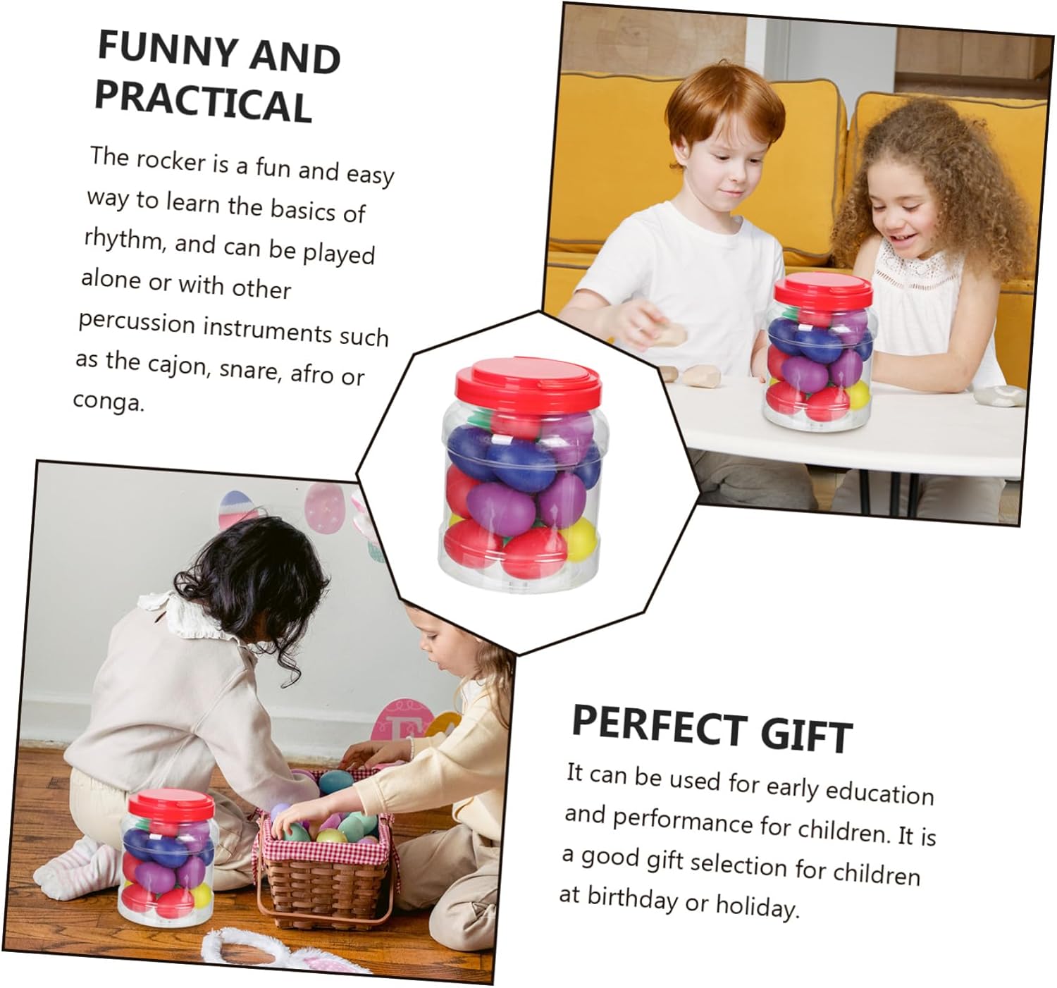 Giocattolo musicale a forma di per : il progetto può sviluppare la capacità dei di usare le mani e il cervello ed è di ottima fattura, strumenti a percussione a forma di Giocattolo con strumento a percussione: il nostro giocattolo musicale a forma di possiede la capacità di deformarsi e rompersi, maraca musical egg Giocattolo musicale per : superficie liscia, senza sbavature, non devi preoccuparti che possa ferire le mani dei , di strumento a percussione Shaker per uova: il design semplice e colorato può attirare molto l'attenzione dei tuoi , strumenti per uova colorate Giocattolo con strumento musicale a forma di : applicabile a una varietà di scene, come casa, asilo, scuola e molto altro, giocattolo con strumento a percussione