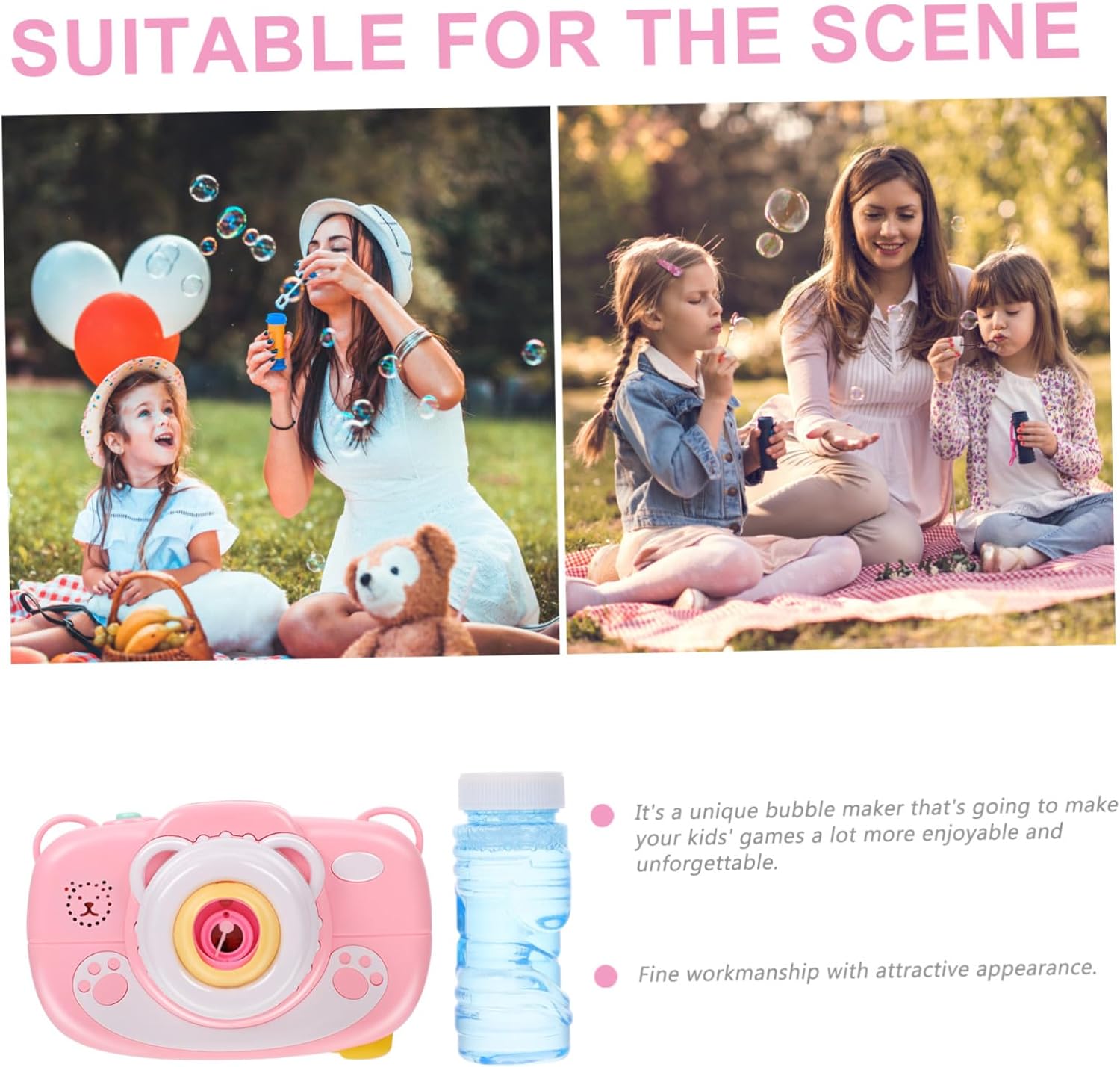 Bubble Toy: un creatore di bolle unico che rende i tuoi giochi più divertenti e memorabili. Macchina per bolle Cartoon Bubble Maker - Viene fornita con una cinghia per poterla portare ovunque in modo facile e portatile Bubble Maker per - Crea bolle colorate che portano tanto divertimento e gioia ai tuoi bambini. Bolle di sapone Giocattolo a bolle - Accompagna tuo figlio con questo giocattolo a bolle per rafforzare la relazione genitore-figlio, giocattolo per bambini Nessuna sbavatura, nessuna lesione alle mani dei bambini, facile da impugnare, macchina per bolle di cartoni animati