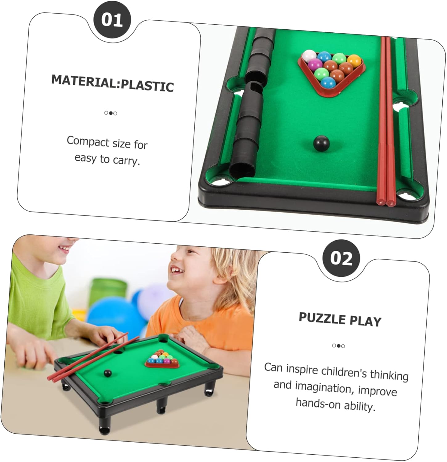 Mini giocattolo da biliardo: tutti possono apprezzare questo mini giocattolo da biliardo durante le feste in famiglia, vi divertirete insieme, giochi da piscina per bambini Giocattolo da biliardo per bambini: questo mini tavolo da biliardo può migliorare l'immaginazione e l'abilità pratica dei bambini, il divertimento, la ripetibilità, mini tavolo da biliardo per bambini Tavolo da biliardo per bambini: vivi il divertimento del biliardo, un gioco interattivo che può coltivare la capacità di coordinazione occhio-mano dei bambini, gioco da tavolo da biliardo per bambini Tavolo da biliardo da tavolo per bambini: i genitori possono accompagnare i propri figli a giocare insieme a questo giocattolo per migliorare il rapporto genitore-figlio, giochi da biliardo per adolescenti Divertente giocattolo da biliardo: usa questo giocattolo da biliardo per esercitare la coordinazione occhio-mano, le capacità motorie fini e altro ancora. giocattolo da biliardo