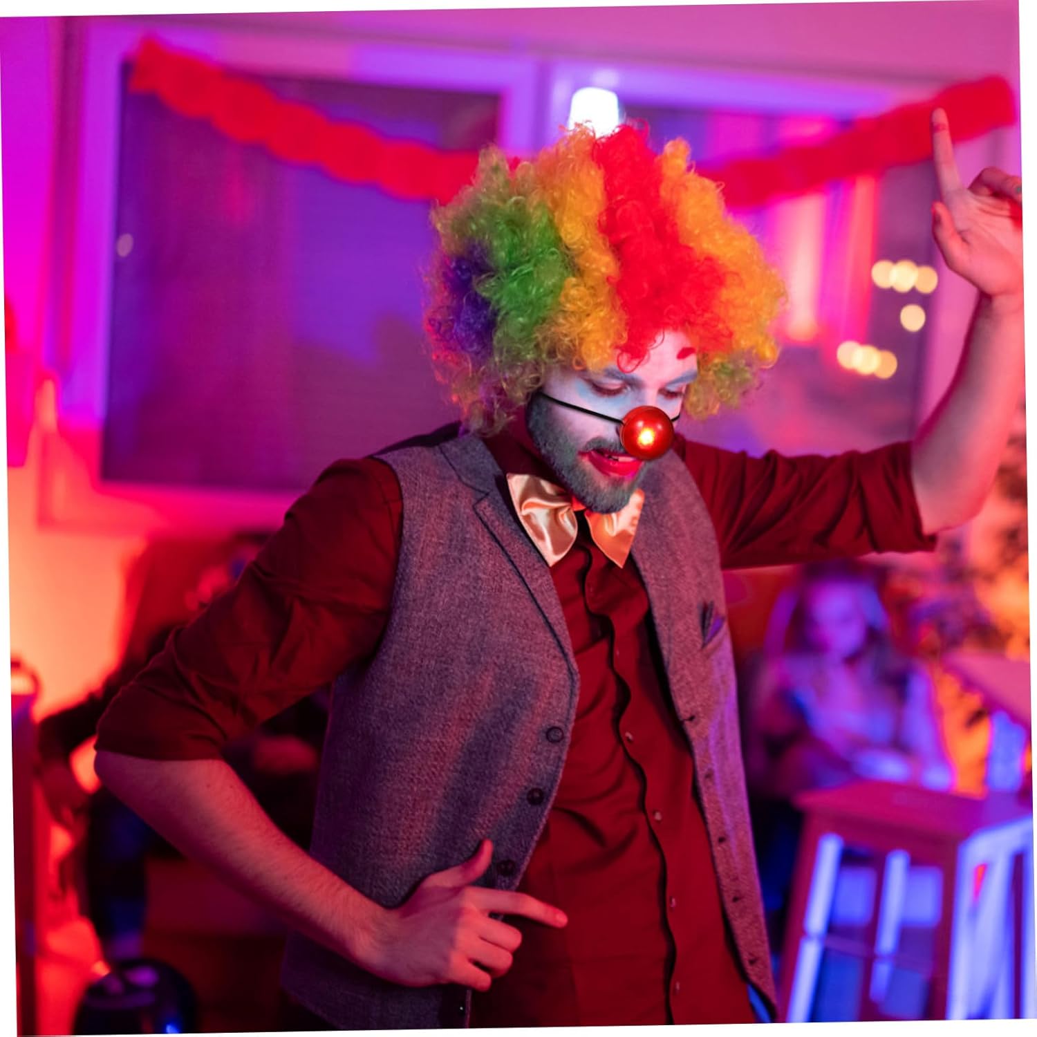 Costruzione robusta: il naso da clown luminoso è progettato per un uso ripetuto, leggero ma robusto, portando un sorriso sul viso di chiunque. Naso da circo luminoso, costume da festa Design luminoso: il nostro naso da clown è dotato di una luce incorporata che crea un bagliore accattivante e può essere facilmente acceso e spento, naso da clown intercambiabile, costume da circo Fascia elastica: il naso da clown è dotato di una fascia elastica che si estende comodamente e saldamente intorno alla testa e impedisce lo scivolamento. Naso da clown luminoso, puntello per naso da clown Design accattivante: l'aspetto vibrante e giocoso del naso da clown lo rende un accessorio eccezionale che attira immediatamente l'attenzione. Costume da clown, naso rosso da clown del circo. Uso versatile: adatto per feste, Halloween, spettacoli teatrali e altre occasioni. Questo naso di scena è un accessorio essenziale per vari eventi, naso finto, roba da clown