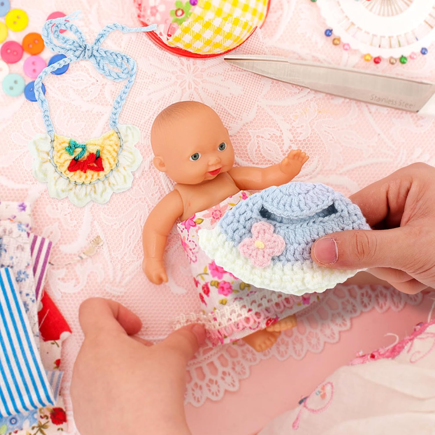 Materiali morbidi: realizzati con tessuto robusto, set bavaglino e cappello per bambole garantisce longevità, perfetto per l'esposizione e la collezione vestiti per bambole, da cosplay per bambole, per giocattoli Perfetto per bambole: progettato per bambole, set cappello e bavaglino da lavorare a maglia è per miniature case delle bambole e oggetti per foto bambole, vestiti per bambole in miniatura, accessori per neonati per bambole Vestibilità : progettati per adattarsi alle bambole, questi accessori per vestiti per bambole in miniatura offrono una vestibilità aderente, migliorando l'aspetto degli da cosplay per bambole, dei vestiti per giocattolo, dei cappelli per vacanze delle bambole Elegante set per bambole: set bavaglino e cappello per bambole presenta un design alla , rende un'ottima scelta per servizi fotografici e esposizioni bambole, copricapo, cappello, bavaglino e mantello per bambole Ottima idea regalo: set vestiti per bambole è un regalo premuroso per gli appassionati bambole, con bavaglino in miniatura e morbido cappello lavorato a maglia, vestiti per bambole appena , accessori per bambole