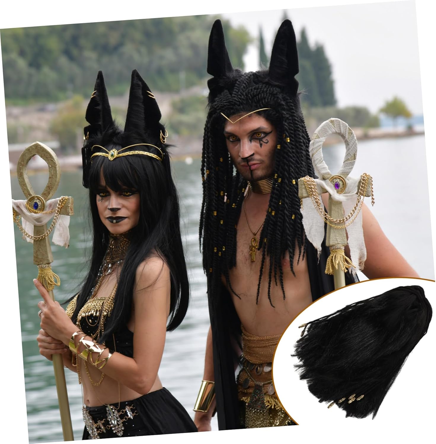 dei pacchetti 1 parrucca Caratteristiche -Applicazione: questa parrucca è ideale per una di eventi, tra cui feste, festival e spettacoli, soddisfacendo tutte le tue esigenze decorative parrucche egiziane per donne - Realistico: l'aspetto realistico di questa parrucca valorizza il tuo costume, facendoti risaltare e essere centro dell'attenzione in qualsiasi evento - Facile da usare: progettata per essere facile da usare, questa parrucca è semplice da indossare e da togliere, risparmiando tempo e fatica preziosi -Materiale: plastica, -Dettagli raffinati: realizzata con meticolosa attenzione ai dettagli, questa parrucca assicura un aspetto realistico e sorprendente che impressionerà tutti - Vestibilità universale: con una vestibilità universale, questa parrucca è adatta a tutte le forme della testa, offrendo una vestibilità comoda e sicura per tutti - : Nero -Dimensioni: 30,00X20,00X4,00 cm/11,79X7,86X1,57 pollici Descrizione della merce Parrucche egiziane da donna: ideali per aggiungere un tocco di antica tuo outfit. Trasforma il tuo look con le nostre parrucche a tema egiziano, ideali per feste in maschera e balli in maschera. Queste parrucche presentano intricate, decorazioni decorative. Indossa la parrucca sulla testa, regolala per il massimo comfort e sarai pronta a brillare in qualsiasi evento.