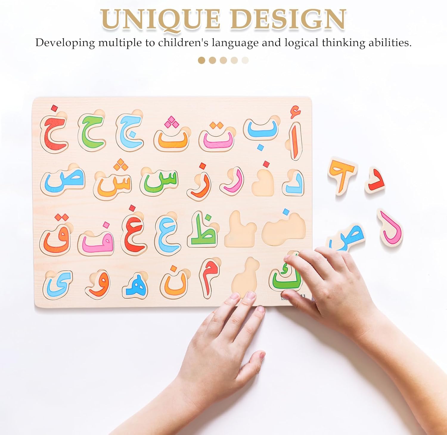 Sviluppo completo delle competenze: I giochi puzzle educativi supportano l'apprendimento dell'alfabeto, migliorando il linguaggio e il pensiero critico dei bambini piccoli Esplorazione della lingua araba: Il puzzle di riconoscimento delle lettere porta autentiche lettere arabe, consente esperienze linguistiche internazionali e arricchisce il background di apprendimento dei bambini Durevolezza: Il giocattolo puzzle in legno per bambini garantisce la sostenibilità e combina costruzione robusta e materiali rispettosi dell'ambiente per un uso mirato come giocattolo educativo per i bambini Coinvolgimento: Le attività del tabellone puzzle consentono interazioni significative e trasformano il gioco quotidiano in un apprendimento prezioso per tutta la famiglia con giochi di lettere di abbinamento Incoraggia il lavoro di squadra: I giocattoli puzzle dell'educazione precoce promuovono la cooperazione di gruppo e insegnano pazienza, comunicazione e successo condiviso negli ambienti di apprendimento dell'alfabeto per bambini