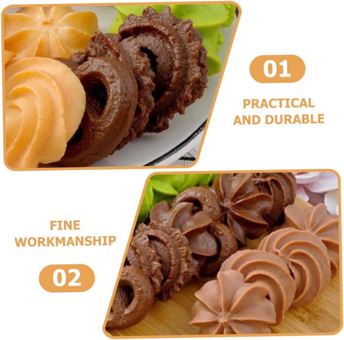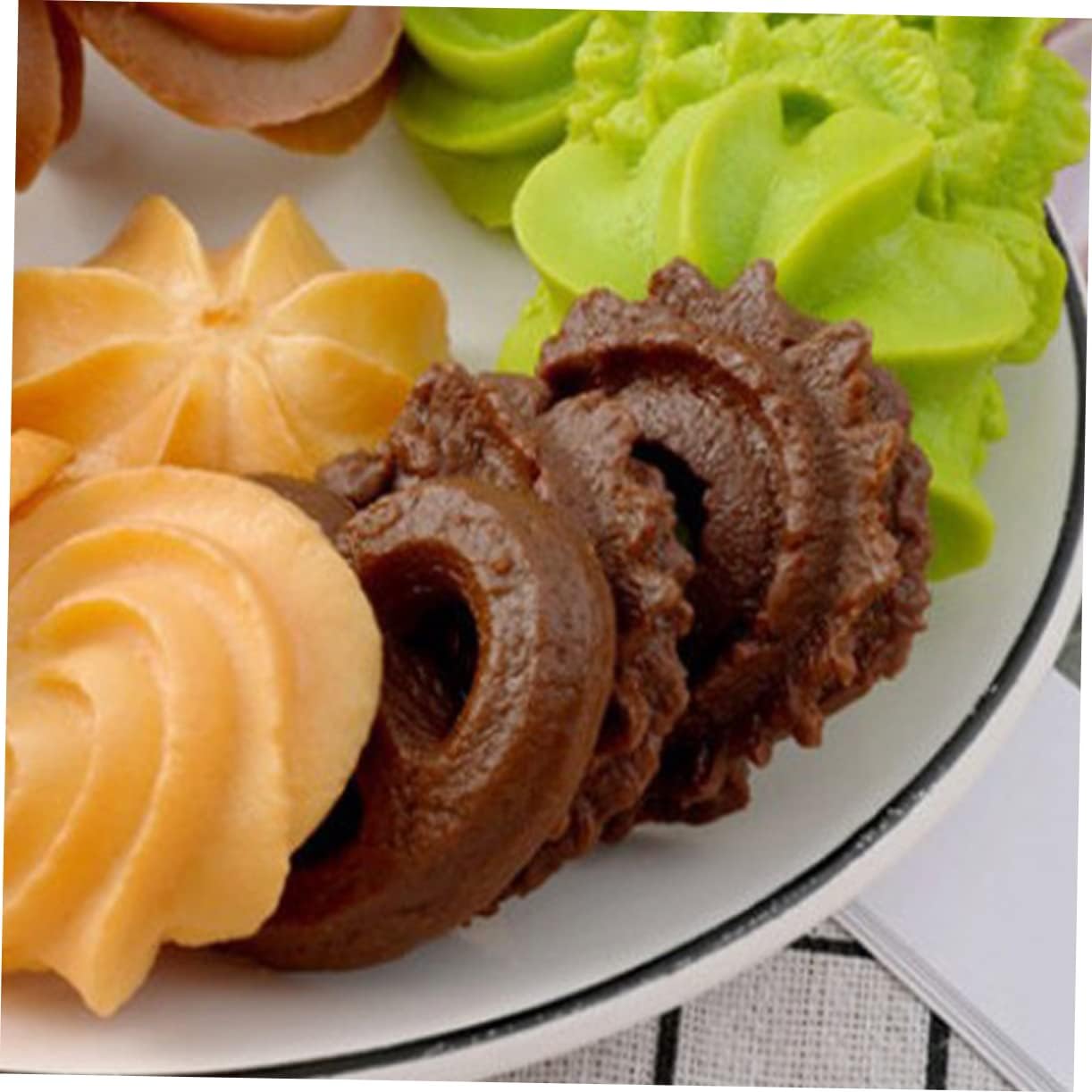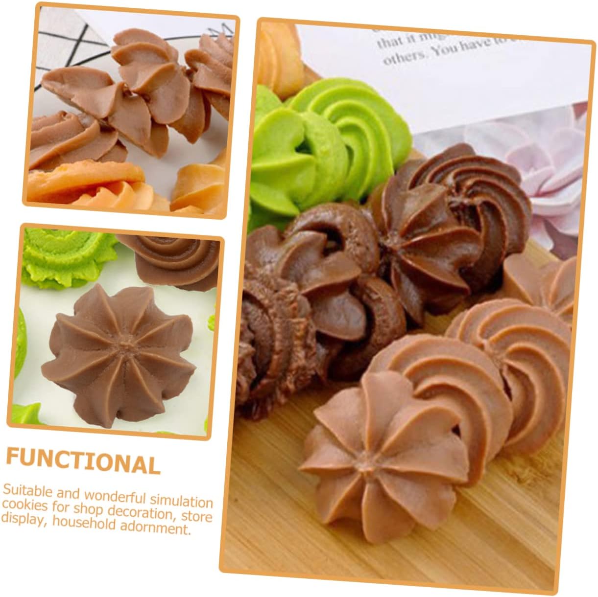 Decorazione simulata di biscotti: colori brillanti, leggeri e realistici, proprio come biscotti veri, così allettante che potresti provare a mangiarli, biscotti finti Cibo finto: i modelli di biscotti possono essere strumenti didattici se l'argomento riguarda il cibo, mostrano bene i dettagli ai bambini, oggetti di scena realistici per la fotografia di biscotti. Simulazione di biscotti: ravviva un buffet o una vetrina con queste decorazioni di biscotti artificiali, modello di biscotti. Modelli di biscotti: realizzati in materiale sicuro, pratici per un uso a lungo termine e difficili da deformare, inodori e realistici, biscotti di simulazione Cibo simulato: realizzato con materiali di alta qualità, i modelli di biscotti di simulazione sono ornamenti delicati e realistici, oggetti di scena per l'esposizione di alimenti