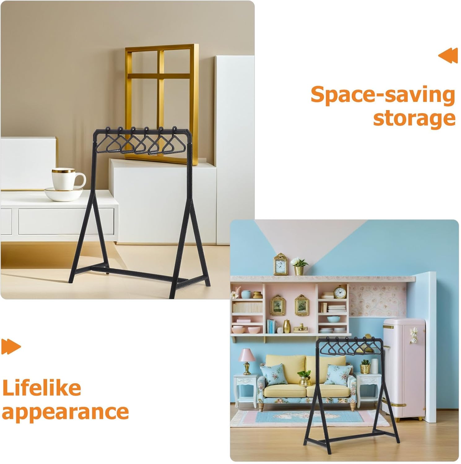 Design in miniatura realistico: l'appendiabiti per bambole e il mini appendiabiti presentano un aspetto realistico, aggiungendo un'organizzazione e un fascino autentici a qualsiasi esposizione di accessori per mobili per case delle bambole o scena di gioco di finzione Conservazione salvaspazio: questo mini set di grucce per vestiti consente di disporre facilmente i vestiti delle bambole, fungendo da organizer compatto per riporre le bambole per la tua collezione di decorazioni per case di bambole in miniatura e accessori per guardaroba Materiale durevole: realizzati in plastica resistente, questi mini ganci e supporti per bambole in plastica garantiscono un uso durevole come parte del tuo scaffale per bambole o del tuo mini armadio, ideale per giochi ripetuti e per l'esposizione Usi versatili: per progetti di mobili in miniatura fai da te o come appendiabiti per bambole, questi mini appendiabiti per l'artigianato supportano la decorazione creativa, aiutando bambini e collezionisti a progettare ambientazioni uniche per case delle bambole Valore di gioco creativo: la combinazione di un porta per bambole e di borse porta per bambole incoraggia il gioco fantasioso, consentendo ai bambini di organizzare, esporre e prendersi cura dei guardaroba delle loro bambole con facilità e stile