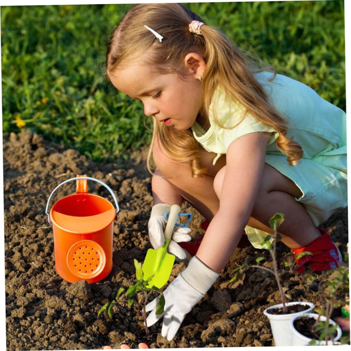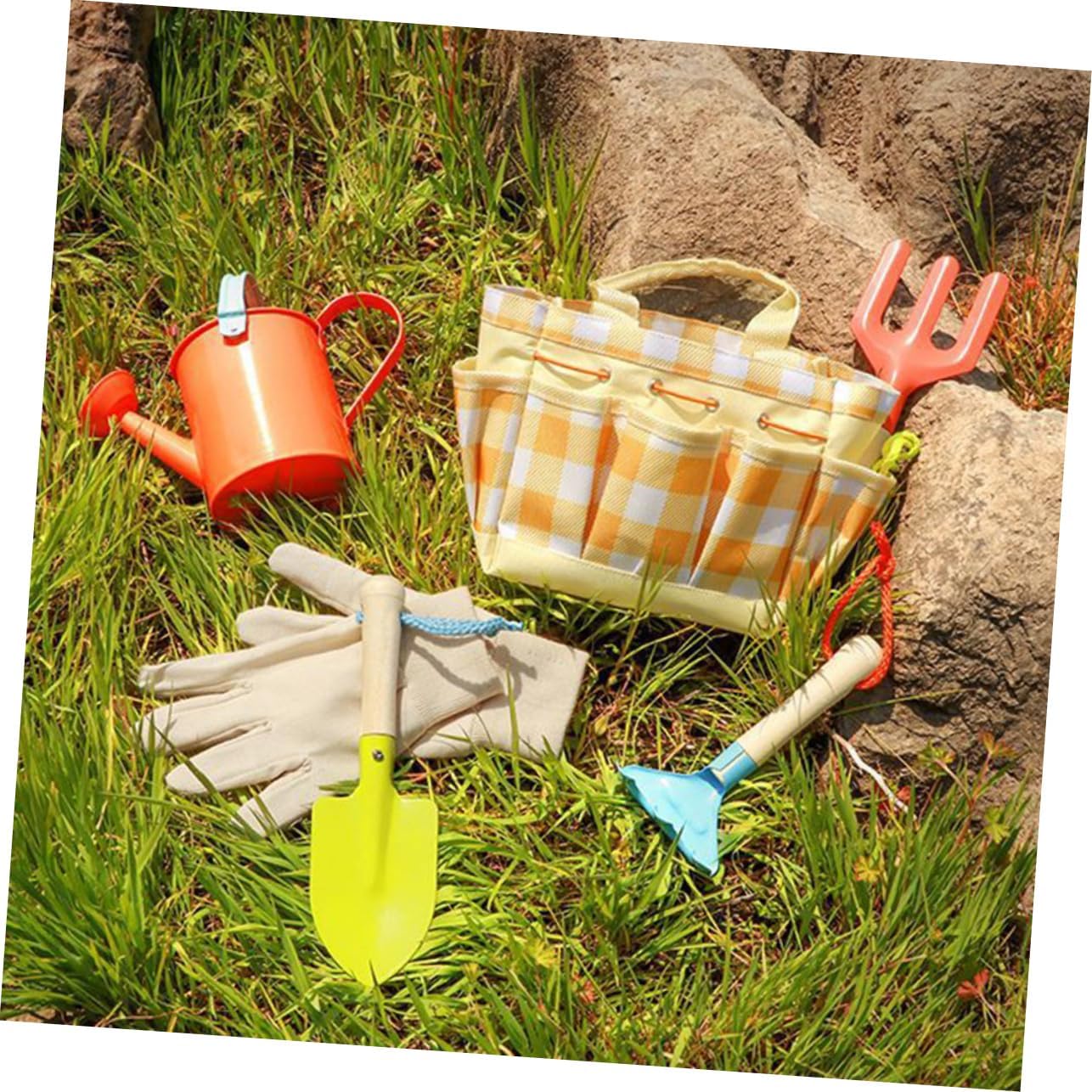 Attrezzi da giardino - bordi arrotondati per saperne di più, set di giocattoli da giardino per piantare rastrello e pala - realizzati per uso pratico, set di giocattoli da giardino Set di giocattoli da giardino - il set include annaffiatoio, guanti, pala, rastrello per zappa, pala dentata e borsa per il trasporto, rastrello per piantare, strumenti per pala Attrezzi da giardino per - attrezzi con manici in legno e set di giocattoli da giardino di alta qualità Ottimo per l'istruzione