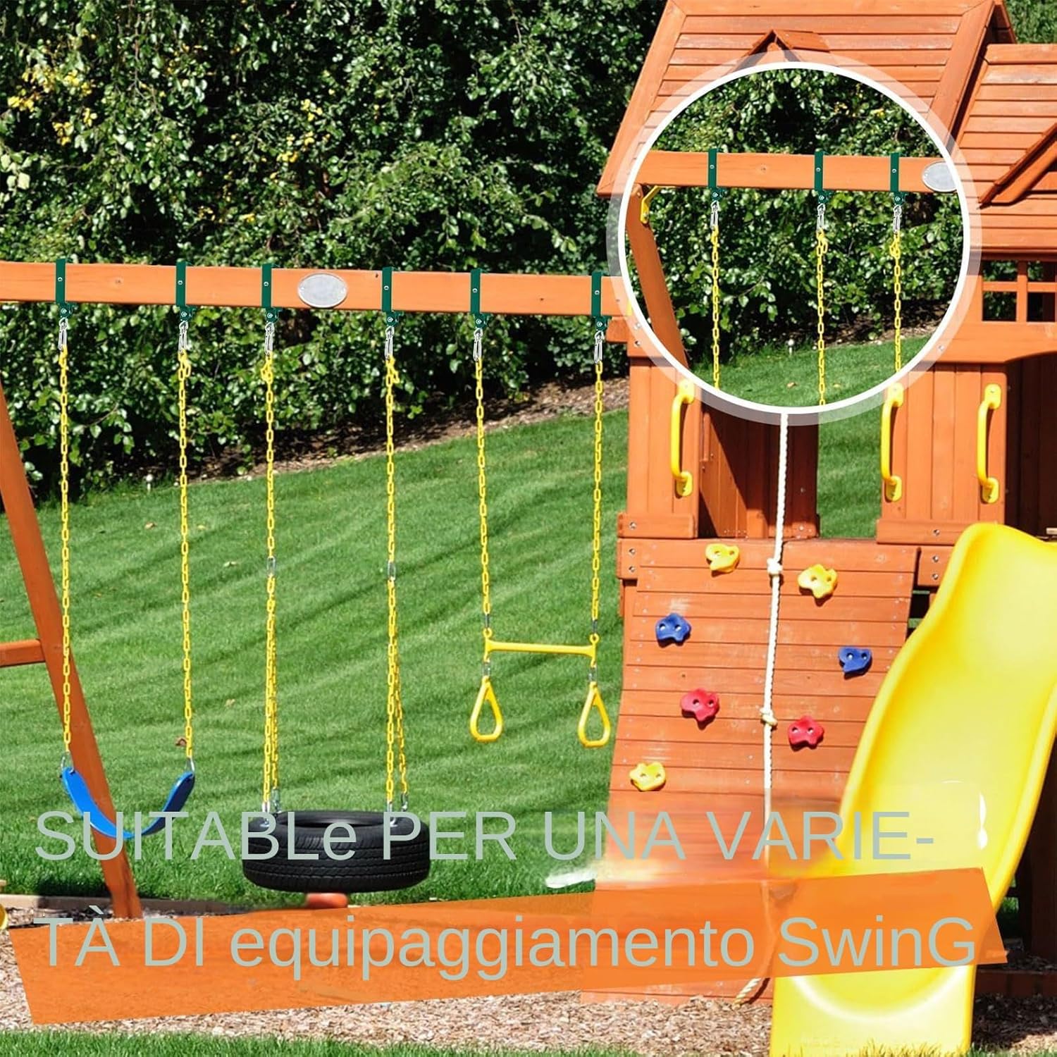 Installazione pratica: Configurazione semplificata con guida passo-passo, tutte le di fissaggio fornite nella confezione per garantire un montaggio sicuro e stabile senza necessità di strumenti aggiuntivi o conoscenze avanzate Misure perfette: I ganci presentano dimensioni di 14,5 x 9,5 cm con spessore di 3 cm, ideali per stabilizzare la maggior parte delle altalene durante il montaggio e l'uso quotidiano, assicurando praticità e sicurezza Materiale durevole: l'acciaio ad alta resistenza garantisce prestazioni affidabili e resistenza avanzata alle intemperie, progettato per ambienti esterni impegnativi per lunghi periodi Promuove divertimento attivo: Aggiunge energia al tuo spazio con un design attraente, spingendo i bambini a godersi il gioco fuori, mentre il colore verde versatile si abbina perfettamente all'ambiente naturale Utilizzo Multiplo: Ideali per altalene da giardino, strutture gioco e sospensioni su albero, questi ganci garantiscono durata e resistenza per attività all'aperto, migliorano il divertimento e stimolano la creatività in giardino, adattandosi a diverse esigenze funzionali con versatilità comprovata