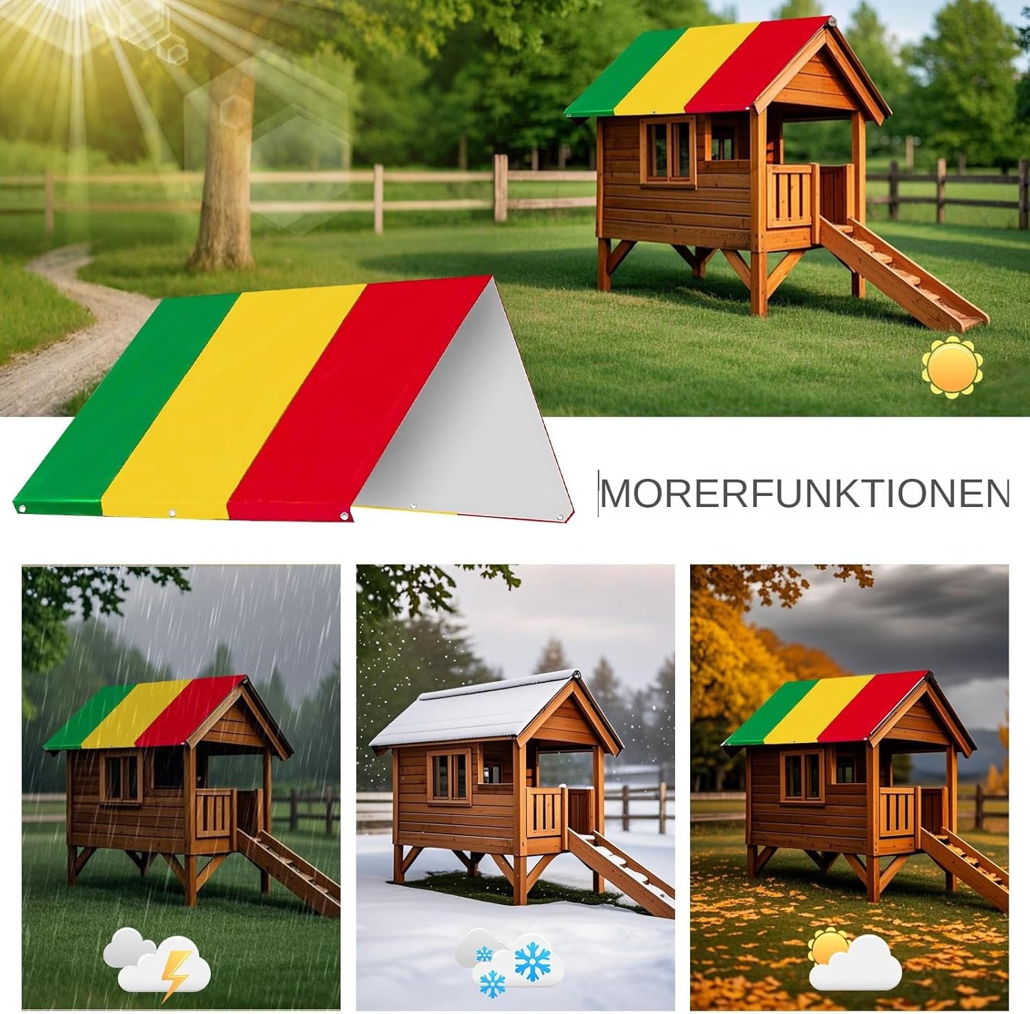 Lunga durata: il baldacchino è costruito per sopportare condizioni estreme e combina tessuto industriale con cuciture rinforzate e raccordi metallici resistenti alla corrosione per una durata senza precedenti Scudo protettivo 4 stagioni: le superfici del baldacchino appositamente trattate respingono neve, foglie e polvere grazie alla tecnologia di rivestimento idrofobico. Tessuto riflettente UV ad alta densità blocca i raggi UV consentendo il flusso d'aria. Cuciture impermeabili e bordi rinforzati creano una barriera meteorologica completa per le strutture di gioco Paesaggio elegante: Sul nostro parco giochi ha una tavolozza di design multicolore, che è armonizzata con vari decori all'aperto. La popolare selezione di colori migliora la coordinazione visiva e trasforma le zone di gioco in estensioni decorative del vostro giardino o giardino Montaggio pratico: questo baldacchino per parco giochi è costruito con parti metalliche pesanti e offre un'installazione di base a vite o fune per una flessibilità senza pari. I bordi rinforzati resistono alla tensione durante la legatura e garantiscono la durata senza compromettere la leggerezza. Non sono necessari strumenti o abilità specifici - per vedere e godere Varie applicazioni: con questa copertura di ricambio ad alte prestazioni rivitalizzare tettoie in volano, casette, panche e attrezzature per il tempo libero. Per una vasta compatibilità, riproduce la protezione vitale dai raggi UV/dalla pioggia
