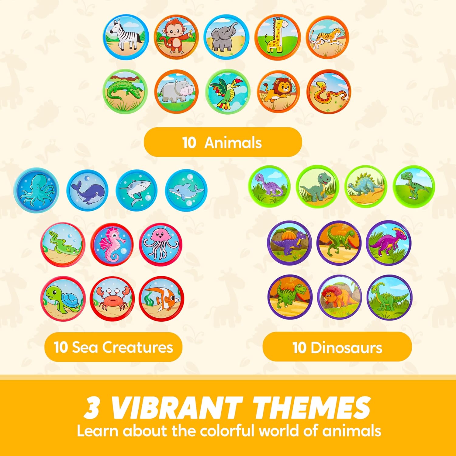 Diversi mini francobolli per il compleanno dei bambini: questo set contiene 50 francobolli colorati con un'ampia selezione di motivi divertenti e vivaci come animali della fattoria, animali marini, animali domestici comuni, animali africani e animali della foresta. Set di timbri per bambini: con vari timbri di animali dello zoo e timbri marini, il nostro timbro per bambini è il set di strumenti perfetto per bambini dai 2 anni in su per progetti artistici e artigianali. Borsa da festa versatile per i compleanni dei bambini. Piccoli regali per i bambini: premiare gli studenti in classe + regalo per gli ospiti per il compleanno dei bambini + mini regali del calendario dell'Avvento per bambini + regali per le feste di Natale e Halloween. Colori vivaci: i timbri sono realizzati con inchiostro sicuro e non tossico che lascia impronte luminose e vivaci su carta, cartoncino e altre superfici. Set di timbri per bambini dai 2 anni in su Espositore pop-up Conservazione portatile: la custodia in plastica compatta consente una facile organizzazione e trasporto dell'intero set di timbri da 50 pezzi. Migliora la tua esperienza creativa con il nostro espositore pop-up incluso.