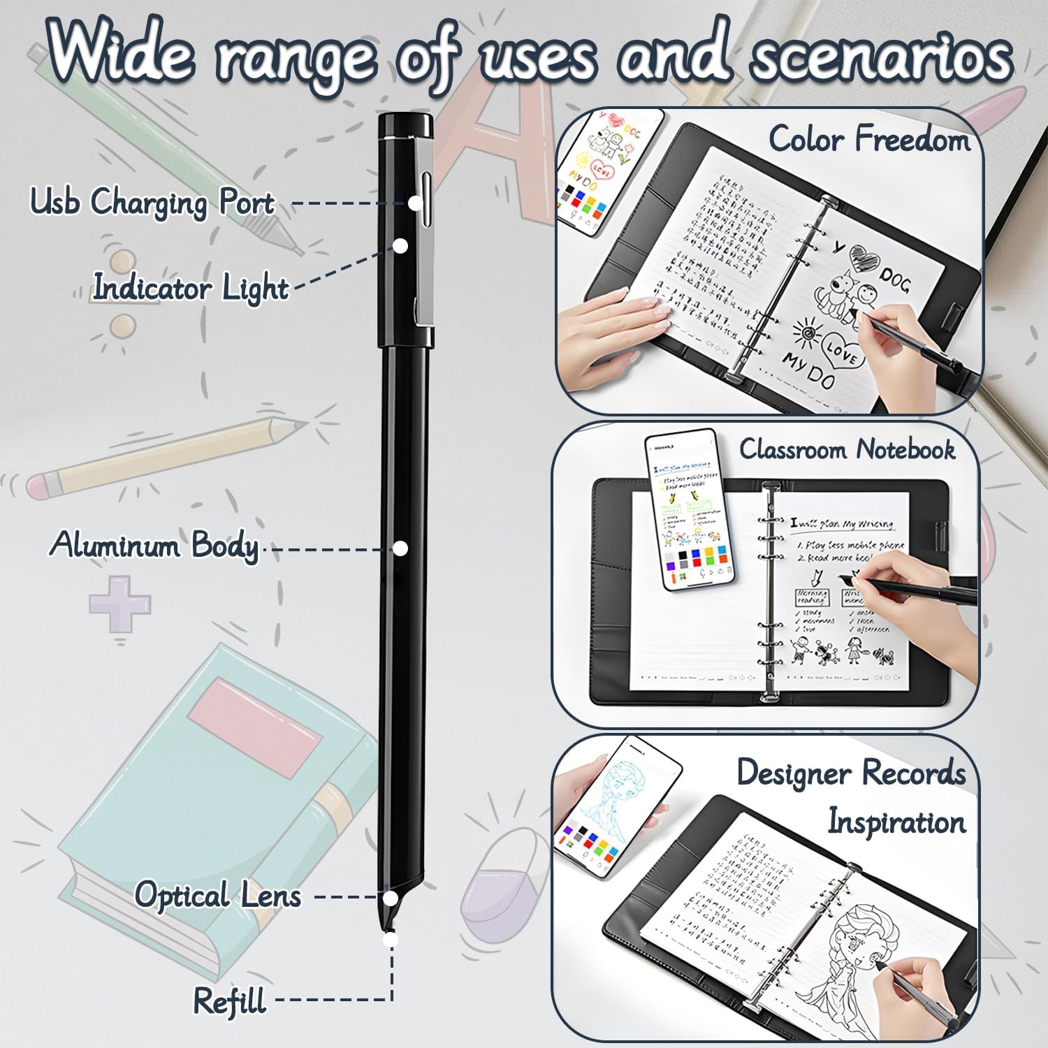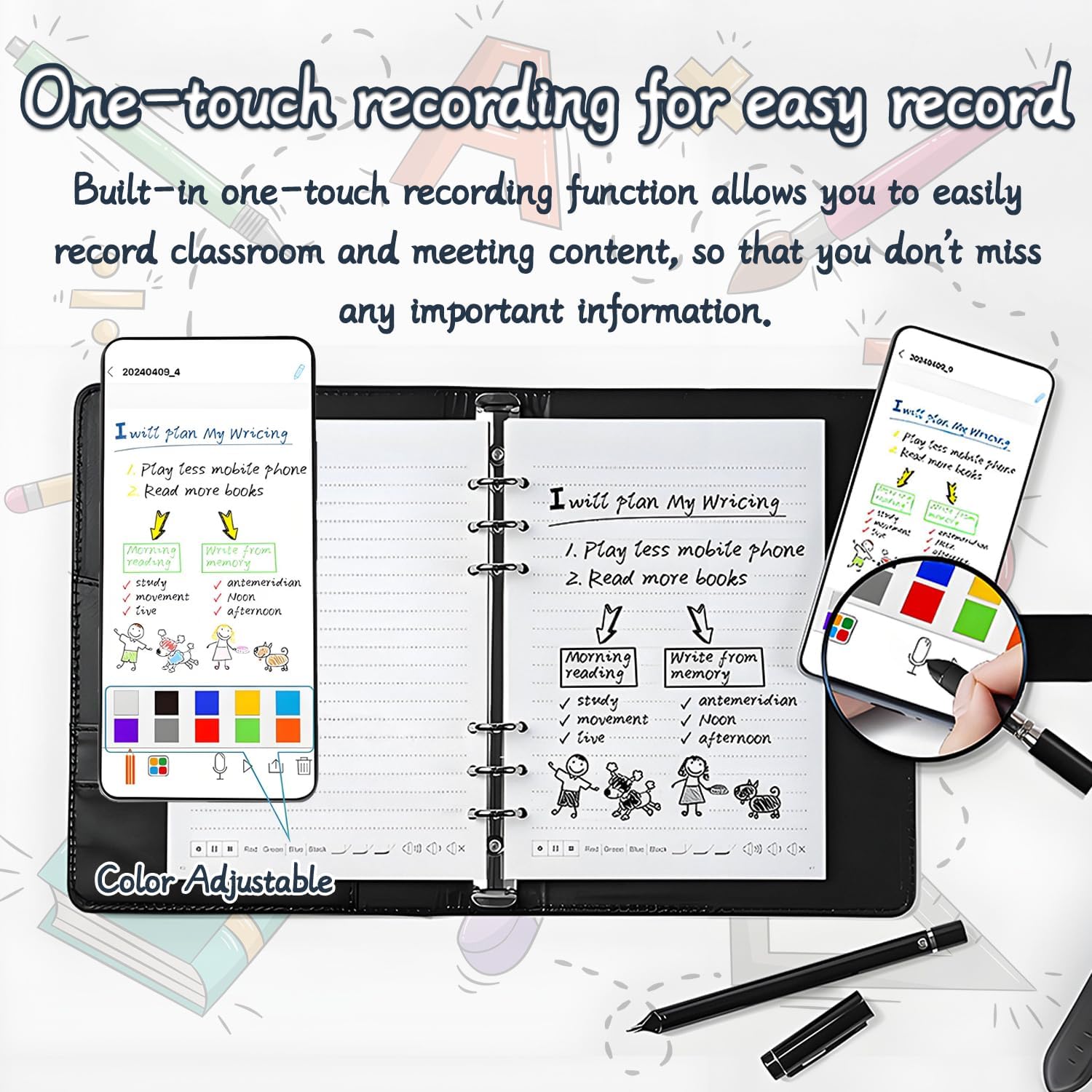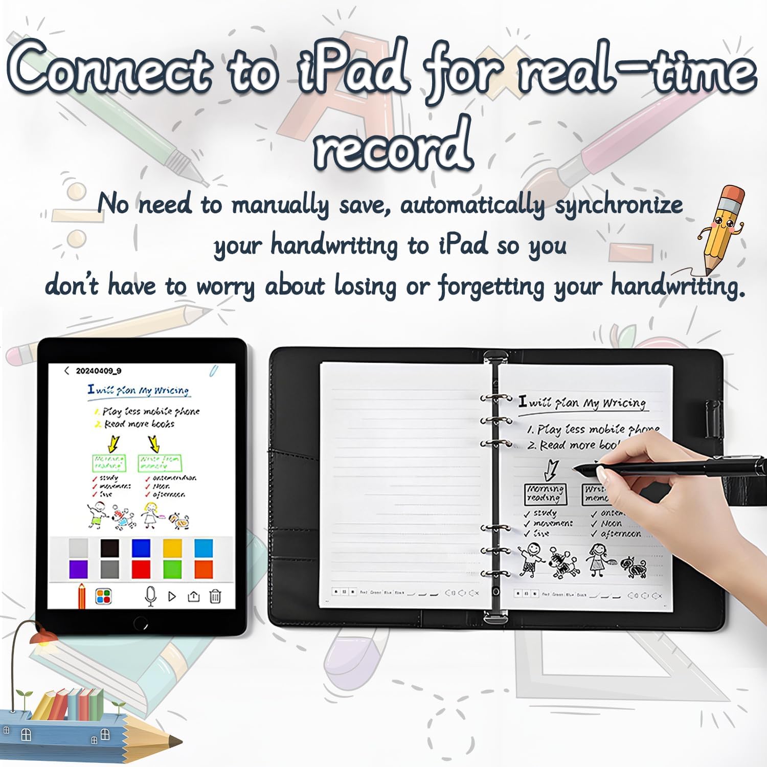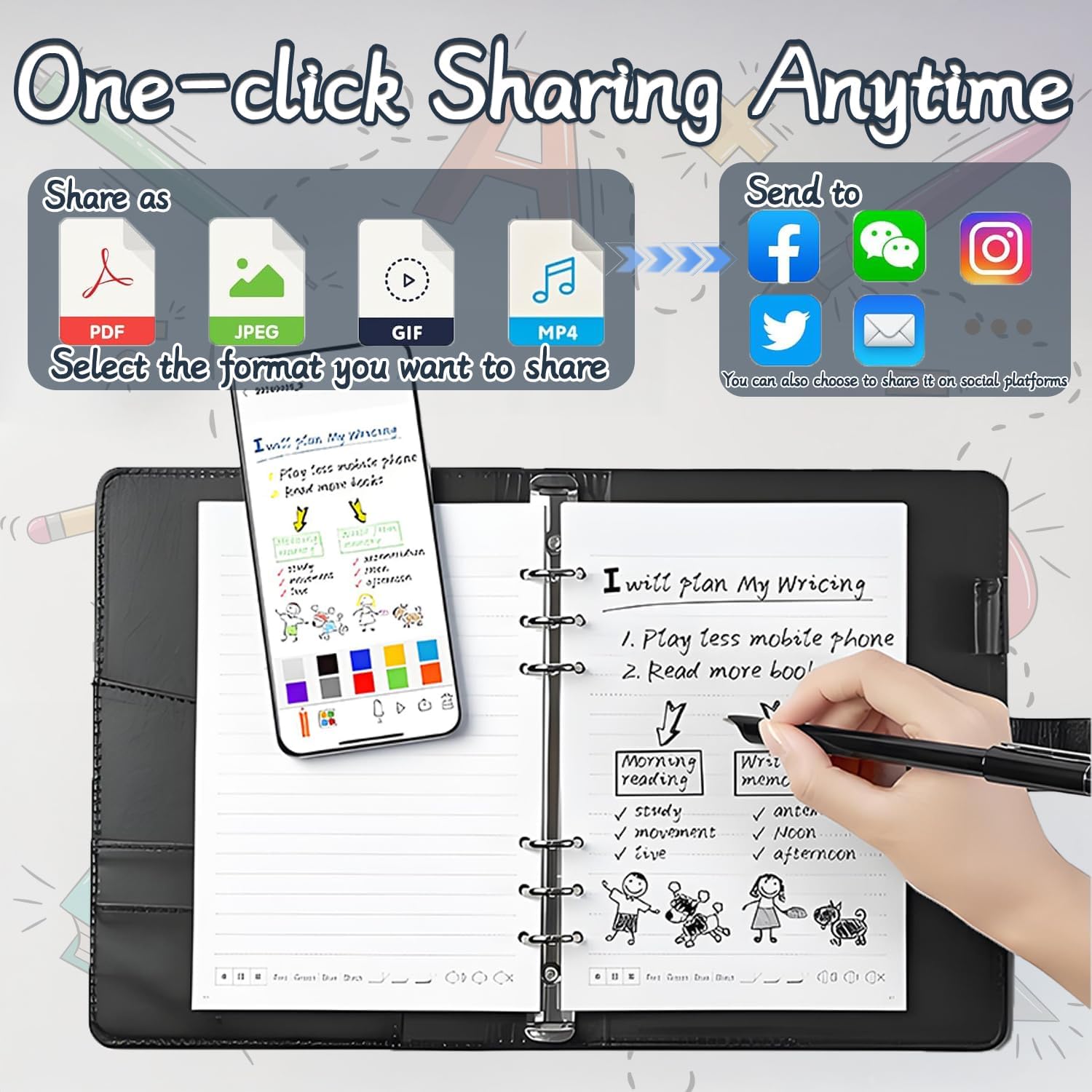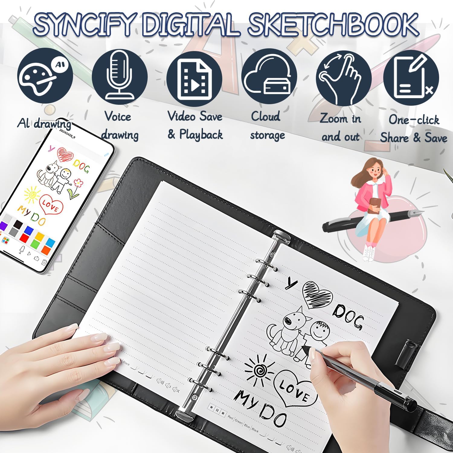 CONVERSIONE ANALOGICO-DIGITALE IN TEMPO REALE: sperimentate la creatività senza soluzione di continuità con il nostro quaderno digitale collegato al cloud. La sua tecnologia di sincronizzazione brevettata digitalizza istantaneamente gli appunti/disegni scritti a mano attraverso il vostro smartphone (compatibile con iOS/Android), eliminando il peso del taccuino fisico. IL PIANO DIGITALE PUÒ ESSERE ARCHIVIATO E CONDIVISO IN MOLTI FORMATI: il blocco note elettronico può produrre gli appunti nell'applicazione in Word, PDF, immagini e altri formati, e condividere i vostri appunti e le vostre creazioni con i vostri colleghi, compagni di classe, amici o condividerli su software sociali tramite e-mail o altri software sociali. VERA TESSITURA DELLA CARTA: godetevi la vera sensazione della carta, per schizzi e disegni perfetti con un tocco autentico, mentre sincronizzate senza sforzo i vostri schizzi in un formato digitale. Ideale per gli artisti che amano l'esperienza tradizionale dello schizzo su carta, con la comodità di un aumento immediato dei numeri. REGISTRAZIONE E VIDEO PLAYBACK DELLA PENNA SMART: il taccuino intelligente può aprire manualmente la funzione di registrazione nell'applicazione, in modo da poter riprodurre la registrazione per rivedere dopo la riunione o la lezione, controllare eventuali omissioni ed evitare di perdere note importanti a causa della mancanza di tempo per registrare; allo stesso tempo, la riproduzione video del processo di registrazione può aiutare a ricordare più contenuti con la registrazione. REGALI PER TUTTI: La versatilità del Syncify Digital Sketchbook lo rende il regalo perfetto per catturare le idee ogni volta che l'ispirazione si fa sentire. Compatto e leggero, è un regalo ideale per studenti, creativi e professionisti di ogni tipo.