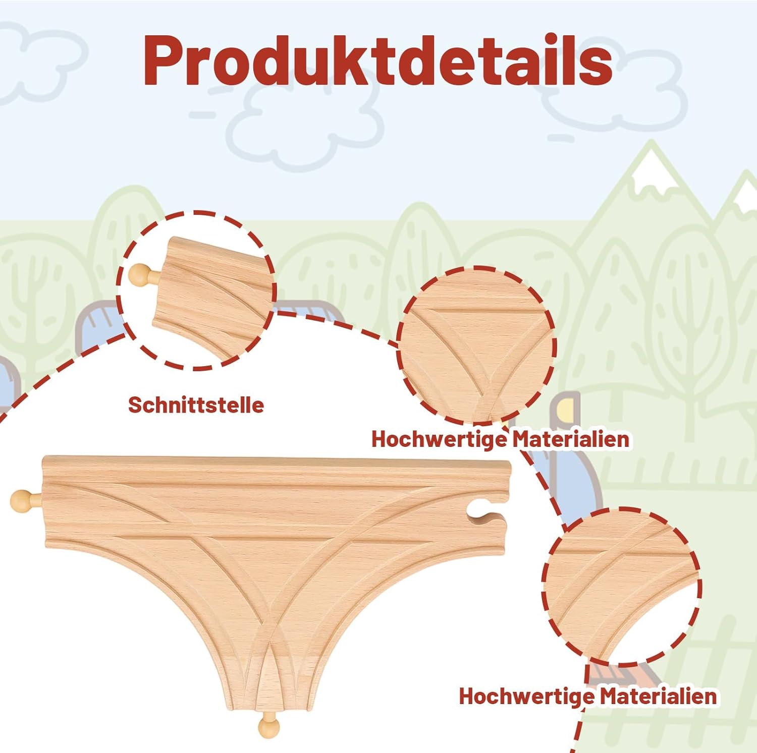 Binario in legno: questa pista da traino in legno di alta qualità si adatta perfettamente ai sistemi ferroviari in legno; la struttura stabile consente un divertimento duraturo per bambini dai 2 ai 5 anni; ideale per il gioco creativo e lo sviluppo delle capacità motorie Compatibilità e versatilità: le piste da traino a forma di T offrono ampie possibilità di gioco con diverse configurazioni di treno; Facile collegamento con la maggior parte delle guide ferroviarie in legno; Stimola l'immaginazione e il pensiero spaziale Valore educativo: accessori da track in legno Supporta lo sviluppo della prima infanzia attraverso l'apprendimento giocoso; favorisce la coordinazione occhio-mano e il pensiero logico durante il montaggio dei binari; ideale per l'uso in asili o a casa Regalo attraente: la Wooden train track è una preziosa aggiunta a qualsiasi amante del treno in legno; perfetto come regalo di compleanno o di Natale per i piccoli appassionati di treni; crea ricordi duraturi giocando insieme Design: lavorazione di alta qualità del set di accessori per train in legno, bordi lisci; conforme ai giocattoli europei
