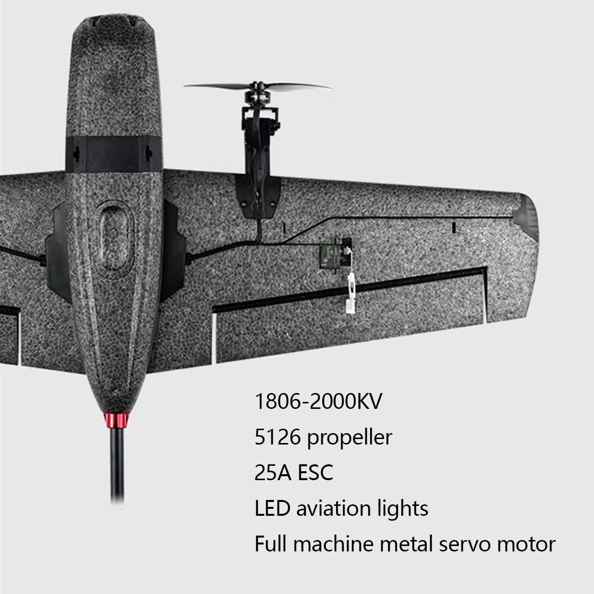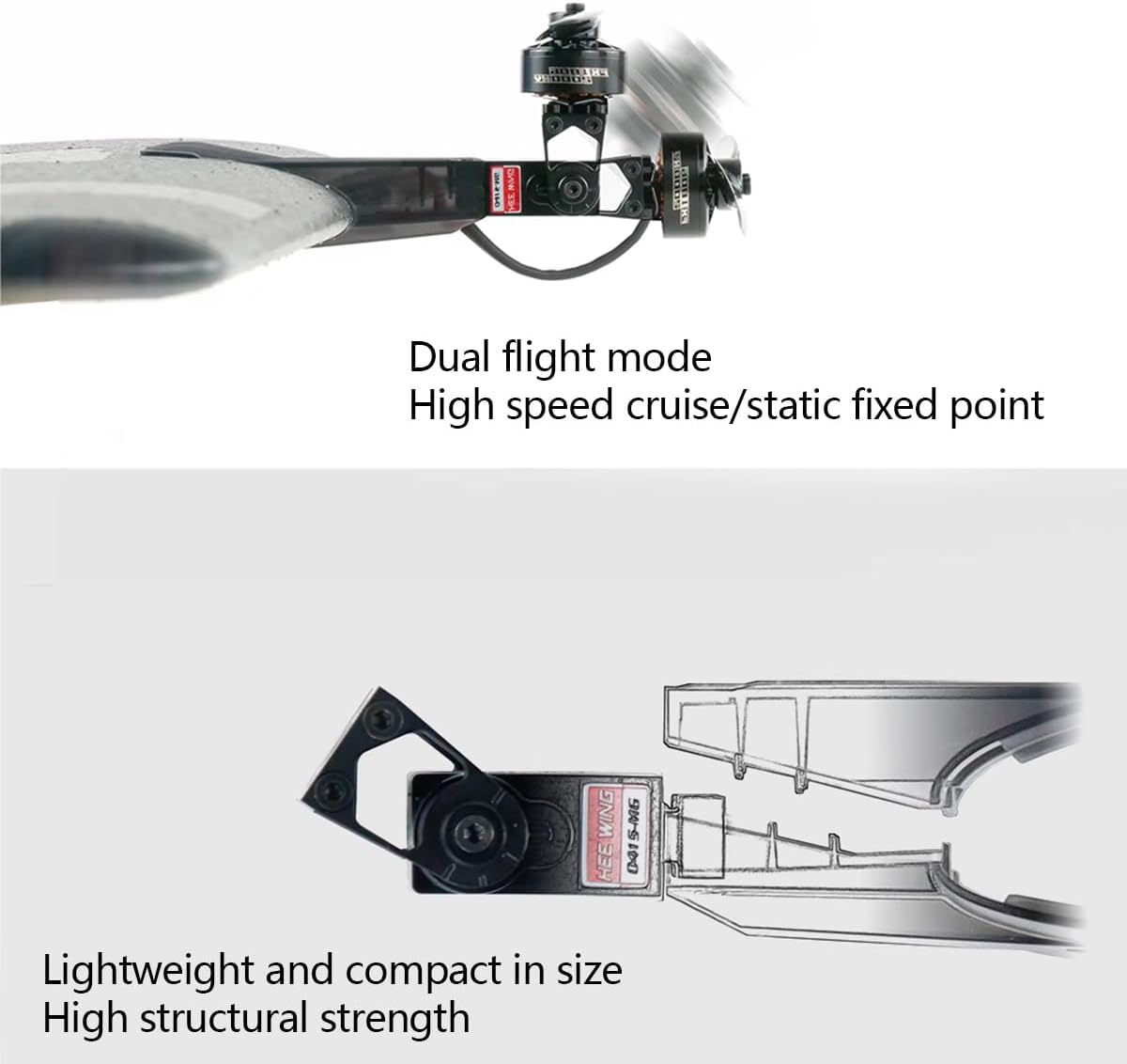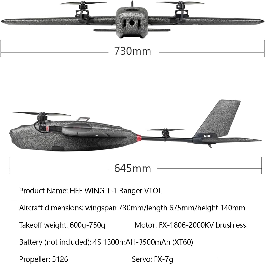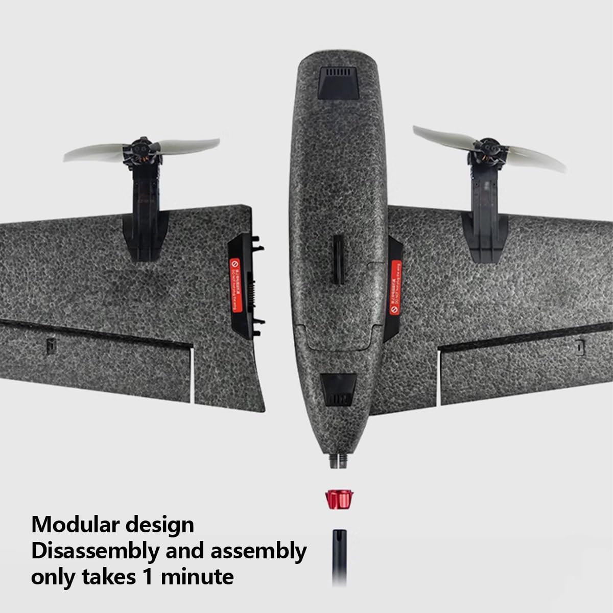 Configurazione elettronica flessibile: l'ampio layout interno con portelli anteriori e posteriori ti dà la libertà di organizzare la batteria e l'elettronica per un perfetto equilibrio del centro di gravità e cablaggio pulito. .FPV-Ready Crash-Resistant: dispone di un supporto per fotocamera FPV dedicato e ali principali staccabili che riducono al minimo i danni da impatto in caso di incidenti. La nuova schiuma bianca ad alta densità corrisponde alla durata della precedente versione grigia. Stabilità aerodinamica ottimizzata di volo: progettato per l'efficienza aerodinamica, il design ad ala fissa rimane altamente stabile a basse velocità. La presa d'aria migliorata garantisce un migliore raffreddamento durante i voli prolungati. Prestazioni potenti: dotato di doppio motore (versione RTF), l'aereo offre un impressionante rapporto spinta/peso fino a 1,71, garantendo un decollo agile e una crociera stabile, anche a basse velocità. Design compatto e portatile: con un'apertura alare di 730 mm e una costruzione leggera in schiuma EPP il Ranger T1 è facile da trasportare, riporre e trasportare. Il suo sistema di alette a sgancio rapido consente il montaggio o lo smontaggio completo in meno di un minuto.