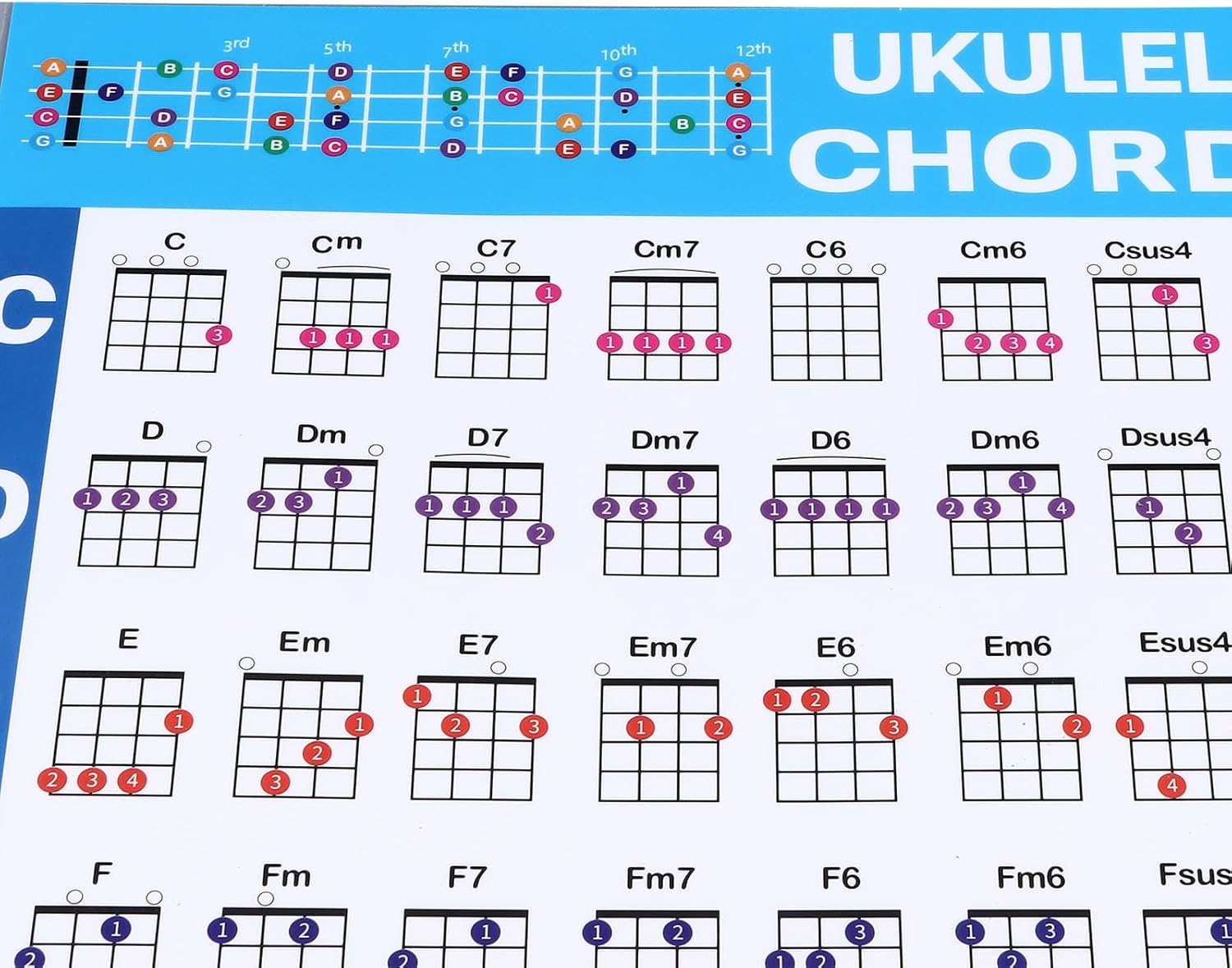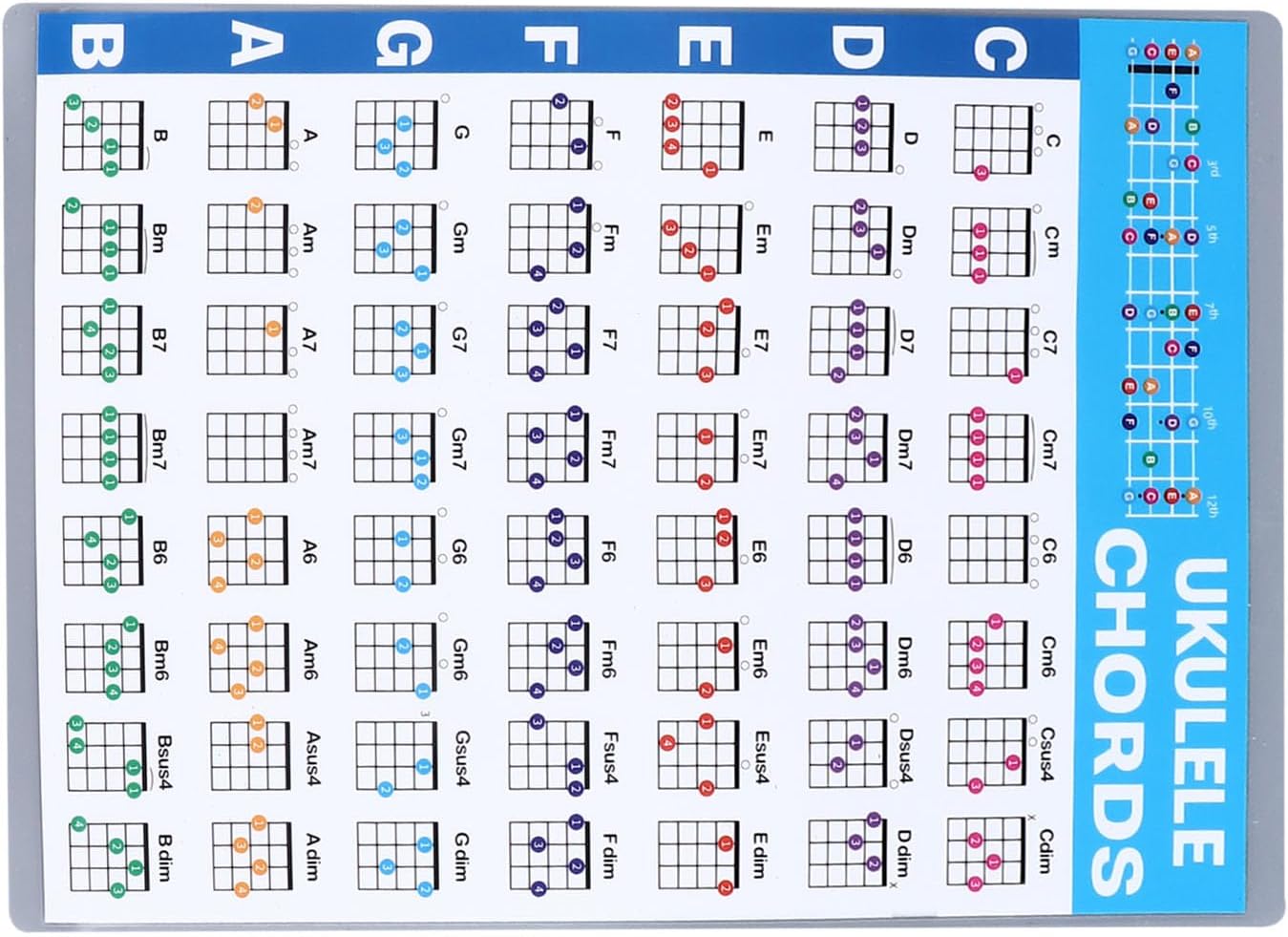 PER PRINCIPIANTI E SUONATORI AVANZATI: questa tabella di accordi di ukulele è adatta a studenti di diversi livelli, principianti o avanzati. Possono trovare supporto e guida per migliorare le proprie capacità esecutive e la conoscenza della teoria musicale. PORTATILE: con le sue dimensioni convenienti, questa tabella degli accordi dell'ukulele è facile da trasportare e può essere utilizzata come riferimento sempre e ovunque, rendendola comoda per imparare, esercitarsi ed esibirsi. RICCA TABELLA DEGLI ACCORDI: questa tabella degli accordi dell'ukulele offre un'ampia gamma di tabelle degli accordi, rendendo più facile per gli studenti cogliere rapidamente diteggiature e posizioni per diversi accordi. DESIGN LAMINATO DUREVOLE: realizzato con un design laminato durevole, questo diagramma degli accordi resisterà all'usura e alla piegatura regolari, prolungandone la durata pur mantenendo chiarezza e leggibilità. MULTIFUNZIONALE: Oltre ai diagrammi degli accordi, questa tabella degli accordi dell'ukulele fornisce anche altre informazioni utili come diteggiature delle scale, tecniche di progressione degli accordi, ecc., aiutando gli studenti ad apprendere le abilità dell'ukulele in modo completo.