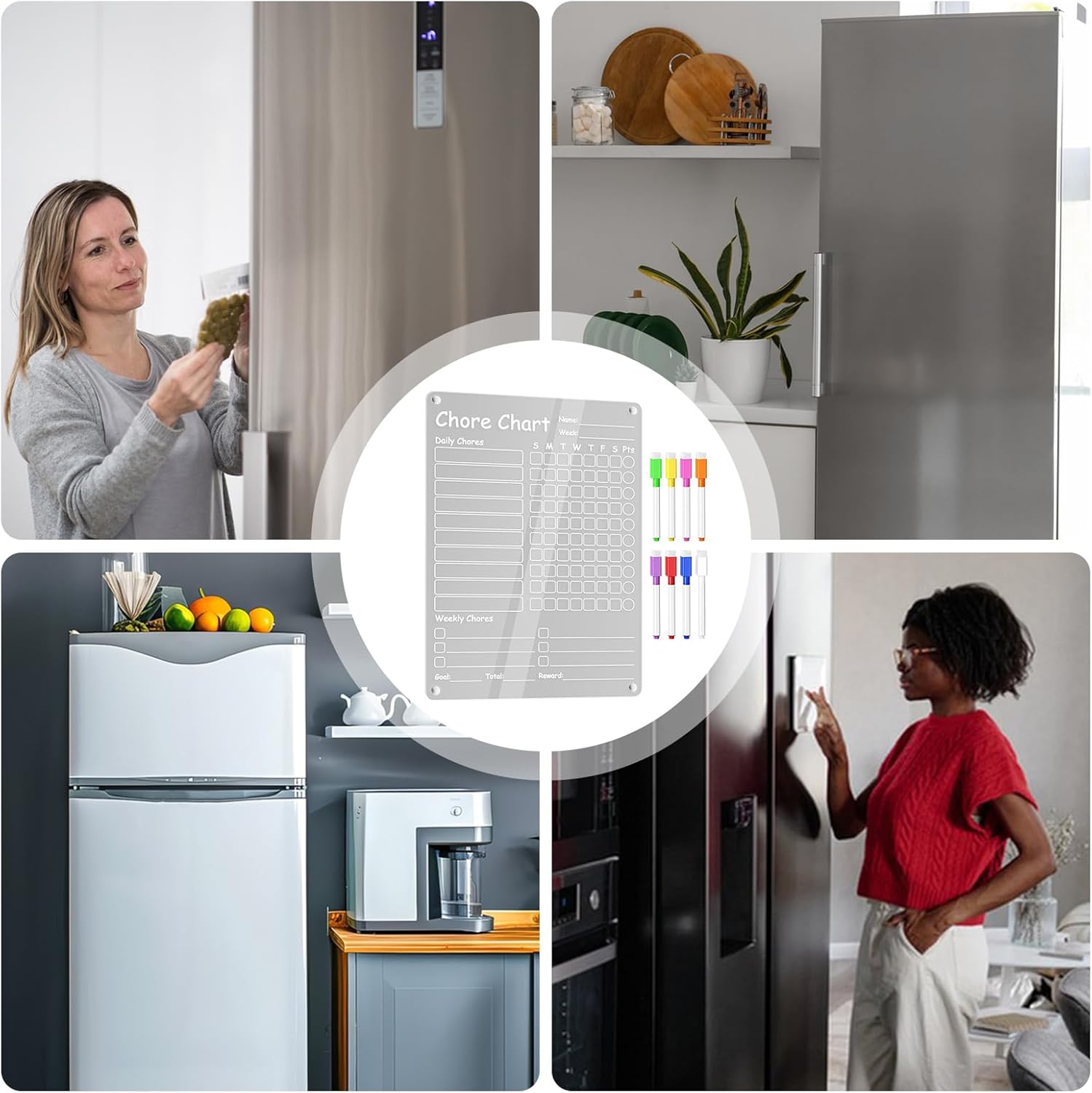 Adattamento Ottimale: Ideato per porte frigorifero standard, integra tecnologia di adsorbimento magnetico con design antiscivolo stabile, offrendo presa salda e performance affidabile in tutte le operazioni domestiche Materiale Resistente: Realizzato in materiale composito ad alta resistenza, questa lavagna evita segni sulla superficie e protegge efficacemente il rivestimento del frigorifero da graffi e usura quotidiana Organizzazione Giocosa: Approccio motivazionale allegro aumenta la partecipazione infantile, offrendo tracciamento avanzamenti con codici colore tramite una lavagna strutturata per gestione compiti . Strumenti di Precisione: 8 pennarelli colorati garantiscono maneggevolezza e linee nitide, mentre la finitura opaca permette pulizia rapida con panno per una durata senza complicazioni Presente :: Questo organizzatore acrilico per faccende domestiche offre packaging festivo pronto per regalo e uso domestico, migliorando l'organizzazione diffondendo gioia in eventi speciali come compleanni o Natale.