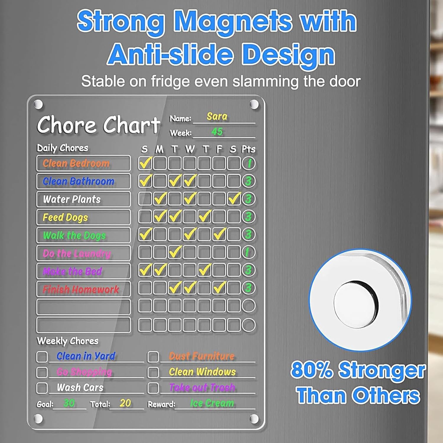 Compatibilità Dimensionale: Dimensionato per porte frigorifero standard, combina adsorbimento magnetico con soluzioni antiscivolo all'avanguardia, mantenendo posizione fissa e sicura in condizioni d'uso normale Lavorazione Ricercata: Utilizza materiale composito avanzato per una finitura impeccabile, previene indesiderati e preserva il rivestimento del tuo frigorifero nel garantendo protezione duratura Tracciamento Dinamico: Design coinvolgente promuove l'impegno dei bambini, utilizzando codici colore vivaci su una lavagna compiti chiara per una pianificazione delle attività quotidiane. Pennarelli Vivaci Inclusi: Dotato di 8 pennarelli a punta fine dai colori brillanti per scrittura , abbinati perfettamente alle superfici opache cancellabili istantaneamente con panno morbido per massima leggibilità Regalo Premuroso:: Lavagna per faccende domestiche in acrilico unisce funzionalità versatile a presentazione , ideale per ambienti domestici e bisogni di regalo durante occasioni speciali con packaging pronto all'uso.
