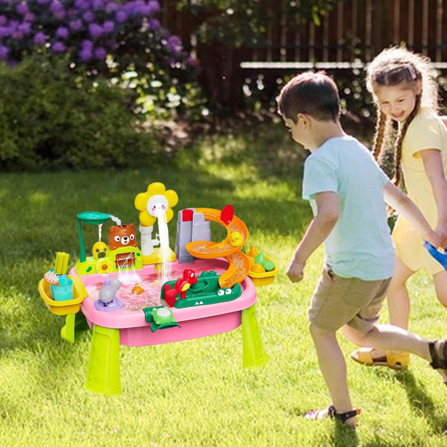 Logic Game World: supporta la sperimentazione pratica con un approccio di apprendimento aperto, migliora il pensiero attraverso i giochi di scoperta fisica durante le esperienze idriche interattive per i bambini Garden & Beach Fun: ideale per l'uso in giardino o sulla spiaggia, questo giocattolo d'acqua promuove il gioco educativo all'aperto come un versatile compagno di sabbia e rafforza la rilegatura genitore-figlio attraverso affascinanti attività idriche piene di immaginazione. Design ergonomico: il tocco di girasole con la simulazione della pioggia promuove scherzosamente l'uso consapevole delle caratteristiche 'acqua interattiva sull'acqua suscitare curiosità e trasmettere il valore della protezione delle risorse attraverso attività di esplorazione per bambini Garanzia divertente: entusiasta di caratteristiche 'acqua realistiche, allena le capacità motorie e la percezione sensoriale attraverso un ruolo immaginativo, giocando a giochi d'acqua di questo bambino Regolazione 'altezza flessibile: le gambe regolabili individualmente accompagnano lo sviluppo delle dimensioni del corpo. Il design ergonomico promuove abilità e concentrazione senza uso dello schermo attraverso esperimenti pratici sull'acqua.