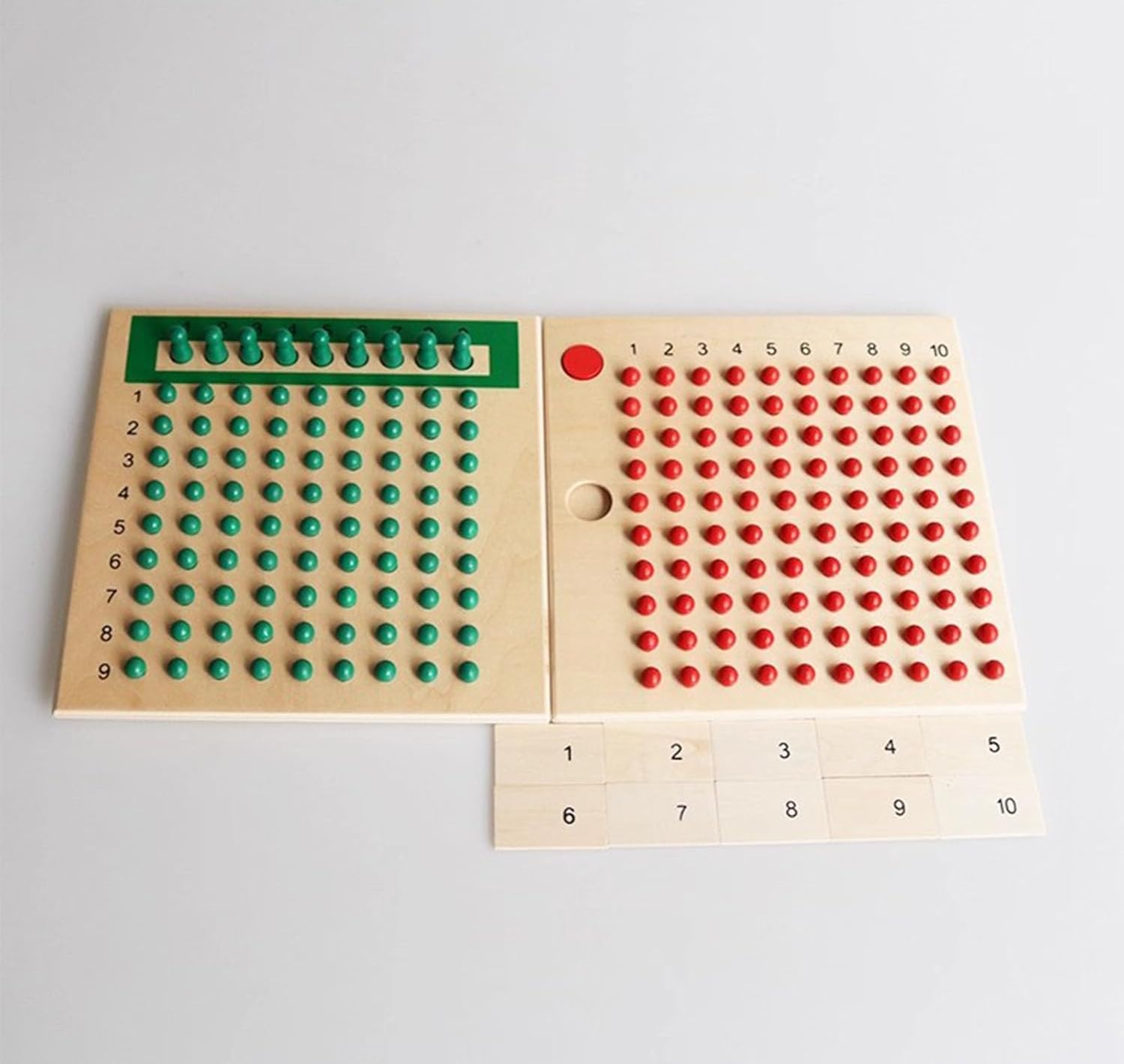 Tabellone di moltiplicazione e divisione Montessori. Gli ausili didattici della matematica Montessori, attraverso una visualizzazione e un funzionamento intuitivi, consentono ai bambini di comprendere meglio i numeri astratti e migliorare il concetto di numeri. Preparati per lo studio della matematica nella scuola primaria e coltiva la capacità di pensiero matematico. Tabellone Montessori, aiuta i bambini a capire che la moltiplicazione è la somma di più numeri identici. La scheda della divisione Montessori, aiuta i bambini a comprendere il concetto di divisione e distribuzione media e migliora la capacità di calcolo.
