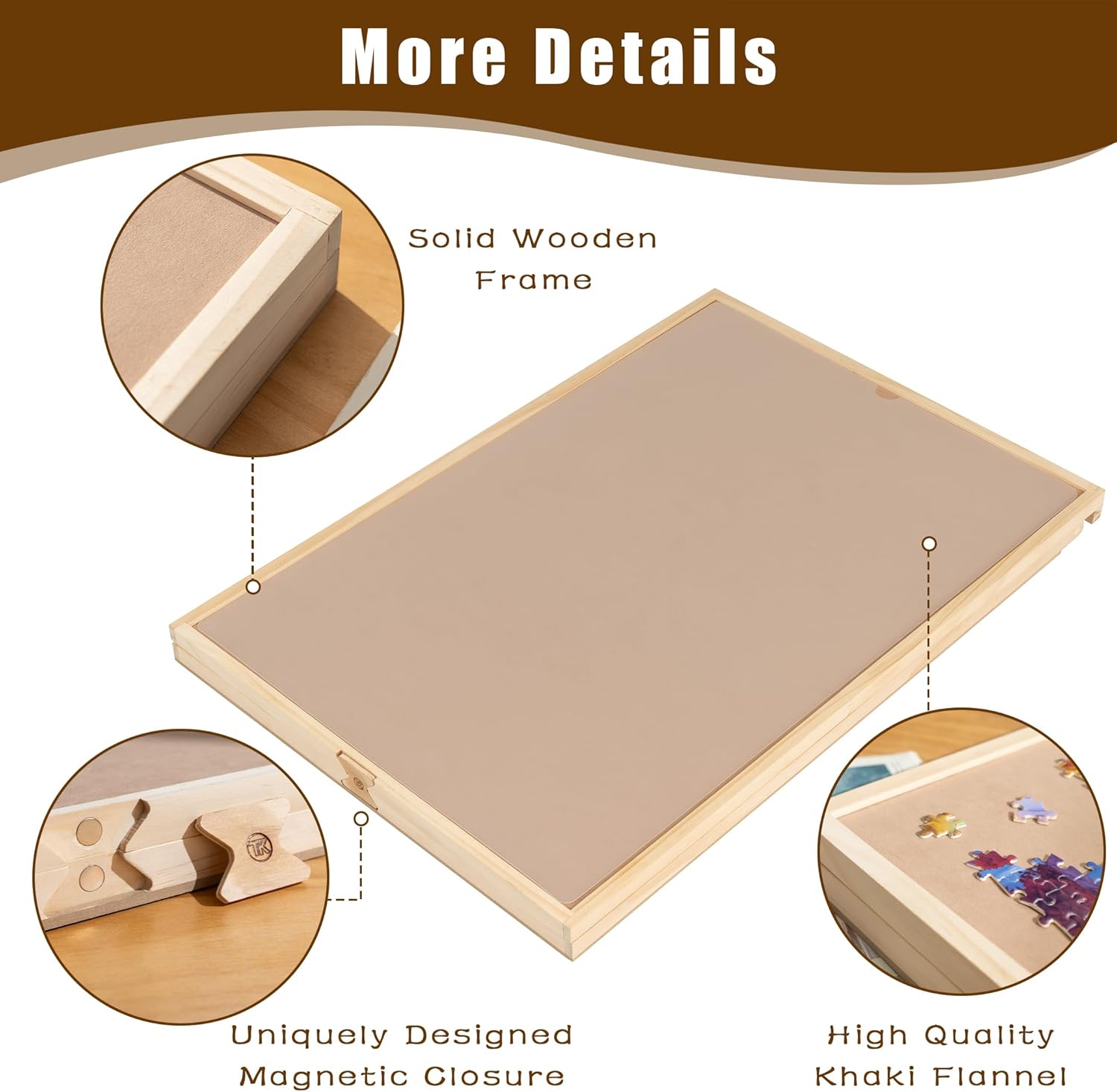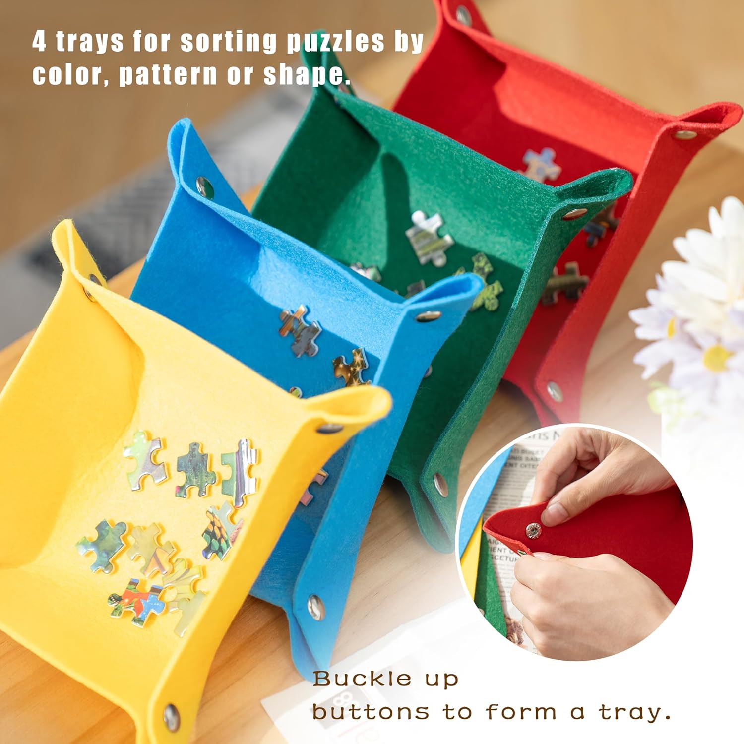 Elegante tabellone puzzle convertibile: il nostro tabellone puzzle è progettato per essere convertito da un tabellone puzzle orizzontale a uno verticale e può contenere fino a 1.000 pezzi. L'area utilizzabile è 76×51 cm. Impostazioni a quattro angolazioni: questa tavola puzzle può essere posizionata orizzontalmente o verticalmente in 4 angoli regolabili per soddisfare le diverse esigenze degli utenti. Scegli semplicemente un'angolazione adatta per evitare lo sforzo lombare e la superficie riflettente dei puzzle. Chiuso da una chiusura magnetica dal design unico - Progettato in modo intelligente con una chiusura magnetica accattivante e pratica da usare. Non devi preoccuparti dell'apertura improvvisa del tabellone del puzzle piegato. Viene fornito con quattro vassoi di smistamento in diversi colori - Fissati con quattro vassoi pieghevoli in feltro in diversi colori per una facile differenziazione e categorizzazione dei pezzi del puzzle. Circondato da una protezione trasparente - Progettato appositamente con una copertura protettiva trasparente per impedire agli animali domestici di rovinare i tuoi puzzle e di incastrarsi sotto il puzzle finito per rimuoverlo in sicurezza.