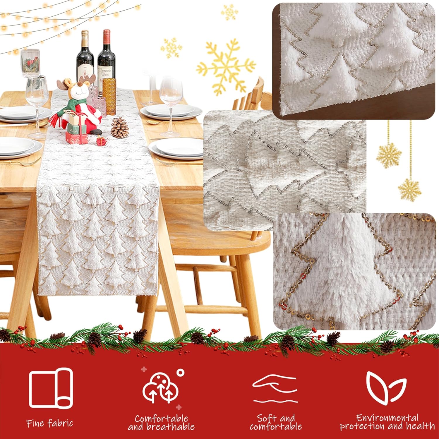 Riutilizzabile e facile da mantenere: il corridore è progettato per un uso ripetuto delle vacanze..Basta individuare pulito con un panno umido per mantenere la sua lucentezza e morbidezza, assicurando che sia bello anno dopo anno. Dimensioni perfette per i tavoli da pranzo: misurare 13x72 pollici, adatta alla maggior parte dei tavoli da pranzo, a buffet o secondari standard, creando un look equilibrato ed elegante per riunioni a casa o nei ristoranti. Decorazioni per vacanze versatili: adatto per l'uso in case, ristoranti o feste, questo corridore migliora gli spazi da pranzo, i tavolini o le aree di visualizzazione, aiutandoti a impostare l'atmosfera festosa perfetta. Accenti Spangle frizzanti: progettato con paillettes luccicanti, il corridore aggiunge una scintilla festosa al tuo ambiente di tavolo di Natale, rendendolo ideale sia per le cene di famiglia casual che per le celebrazioni speciali delle vacanze. Tessuto di peluche morbido: questo corridore da tavolo di Natale 13x72in è realizzato con materiale morbido, fornendo una consistenza accogliente e festosa che migliora il tuo tavolo da pranzo con calore ed eleganza.