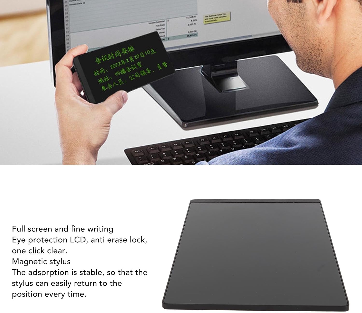 [LCD per gli occhi: lo schermo LCD Gentle on Eyes riduce la tensione e la fatica, consentendo ore di comoda scrittura o disegno. [Schermo intero e scrittura raffinata]: offre un'esperienza di scrittura precisa e con il suo display a schermo intero e i tratti di penna fine. [Durevole e portatile]: alternativa riutilizzabile ed ecologica alla carta, adatta a vari scenari come autobus, aereo e scuola. [Cancella e funzione di blocco]: impedisce la cancellazione accidentale di lavoro con la funzione di blocco della cancellazione, offrendo una semplice pulizia dello schermo con un pulsante Clear Function. [Stylus magnetico]: si attacca in modo sicuro al tablet di scrittura per un uso e il trasporto convenienti, eliminando le preoccupazioni per la perdita di stilo.