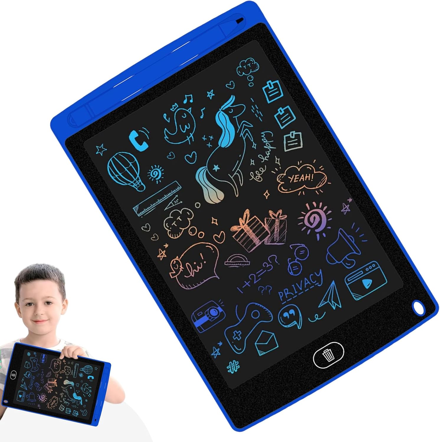 Promuovi l'apprendimento e la creatività: l'immaginazione dei tuoi figli con la nostra tabella di scrittura LCD, una tabella di scarabocchi per bambini sensibili alla pressione che consente loro di creare linee di spessori variabili con ogni chiave. La cancellazione senza sforzo di un singolo consente di scarabocchiare e saperne di più, il che lo rende un giocattolo educativo e divertente per tutti i bambini Migliora la creatività di tuo figlio: dotato di tecnologia di liquido sensibile alla pressione, questo design migliorato consente ai bambini di scrivere, disegnare e scarabocchiare; Offre vibranti colori , senza abbaglianti o luce blu per proteggere i giovani occhi Facile da trasportare: con un design leggero e portatile con una dimensione compatta incredibilmente facile da trasportare. Portalo con te ovunque tu sia e goditi la comodità ideale di una facile presa di appunti e un'espressione creativa Uso esteso: tabelle da scarabocchiare ai tavoli aritmetici, tra cui tavole da disegno, tabelle di scrittura per bambini e persino memo di famiglia, questo tabletoffre una vasta gamma di applicazioni, consentendo a prosperare più creatività. Regalo unico: questo tabletdi scrittura LCD per bambini è il regalo ideale per liberare la creatività. per l'anno, il compleanno, la festa per bambini, la Pasqua, il Ringraziamento e il Natale sono lo strumento ideale per disegnare, scrivere e scarabocchiare. Un grande regalo per tutte le età