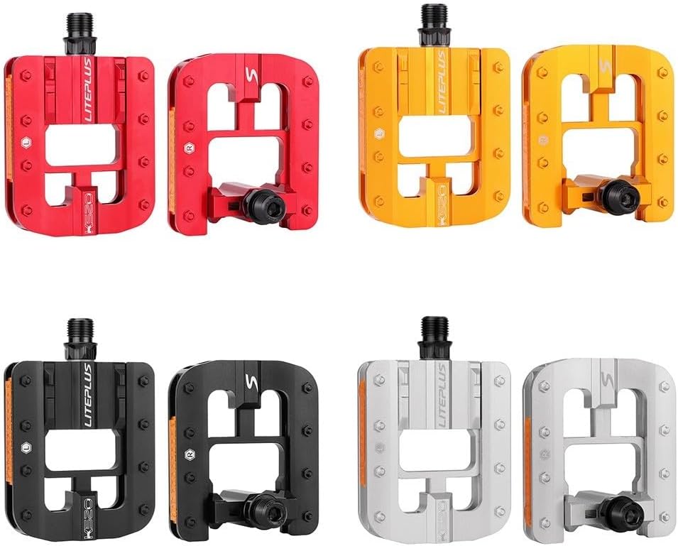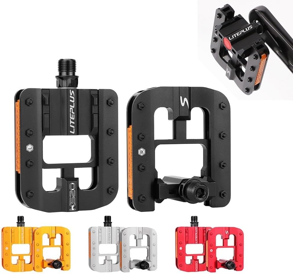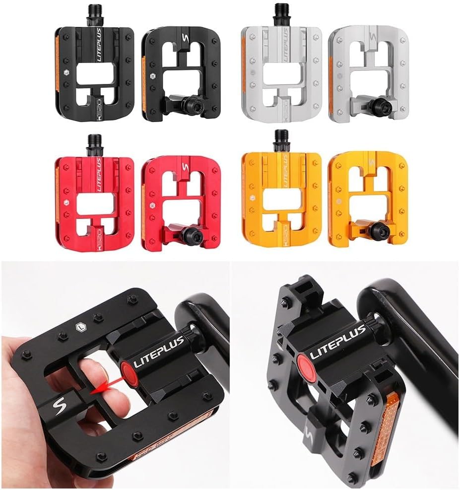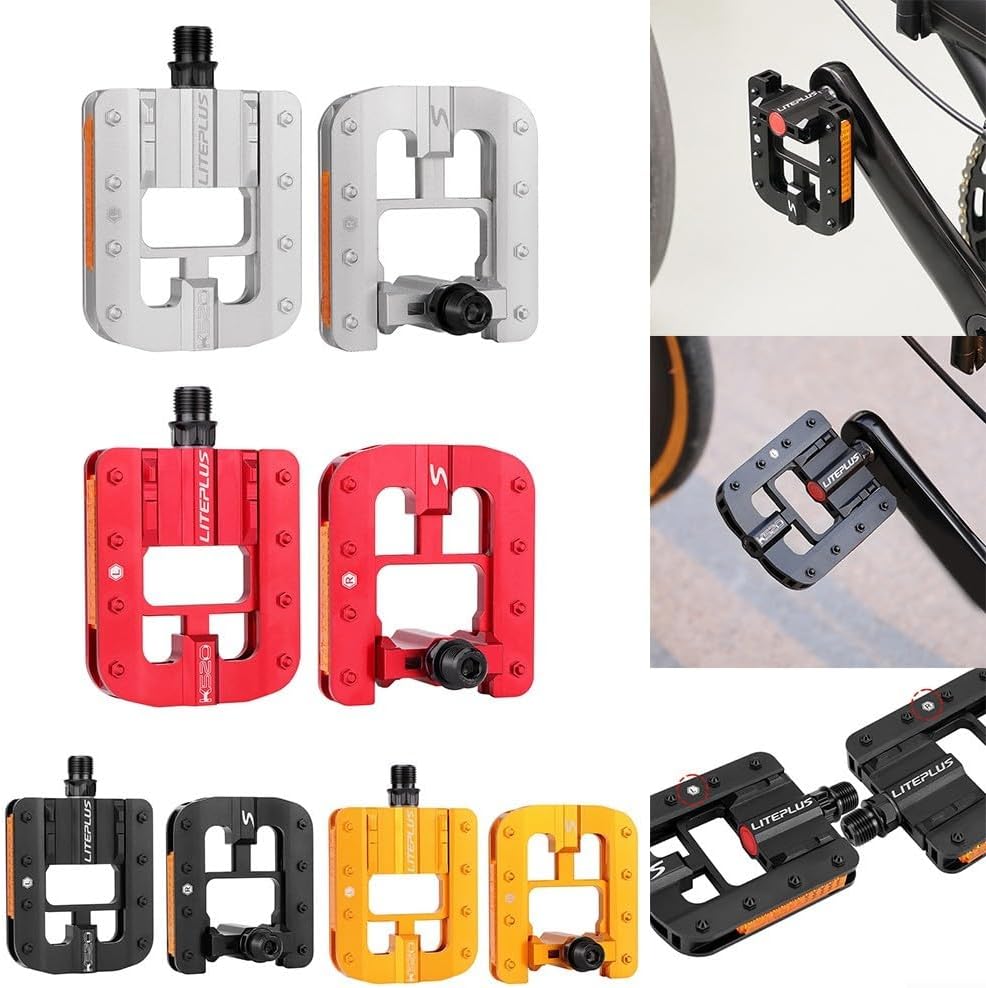 Design pieghevole: questi pedali per bicicletta sono dotati di un meccanismo di piegatura rapida che può essere facilmente piegato con una sola mano. Ciò consente di riporlo comodamente e risparmiare spazio quando non in uso. Lega di alluminio resistente: realizzati in lega di alluminio, questi pedali sono resistenti e costruiti per durare. Il piede adotta la lavorazione CNC con maggiore resistenza, peso leggero e maggiore capacità di carico. Antiscivolo e riflettente: progettati con chiodi antiscivolo su entrambi i lati, questi pedali offrono un maggiore attrito e un migliore effetto calpestio. Sono inoltre dotati di piastre riflettenti, migliorando la visibilità e riducendo i rischi per la sicurezza durante la guida notturna. Compatibilità universale: questi pedali sono dotati di un diametro della filettatura universale di 14 mm, che li rende compatibili con la maggior parte delle biciclette. Sono adatti per una varietà di biciclette e possono essere facilmente installati. Specifiche: disponibili nei colori nero, argento, oro e rosso, questi pedali hanno uno spessore di 17 mm e pesano circa 349 g. La confezione include un paio di pedali per la vostra comodità. Totale caratteri: 551