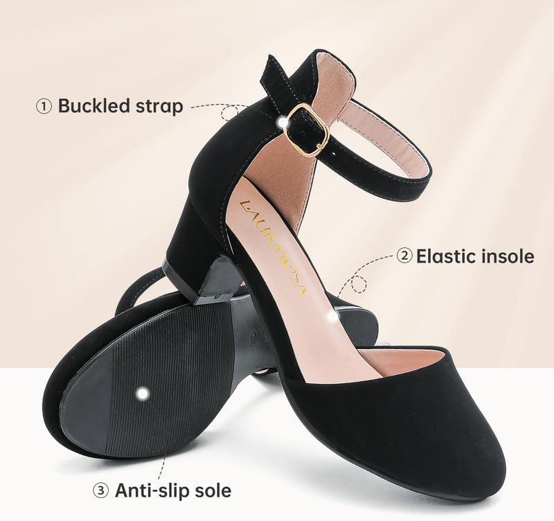 Simple but elegant style, they work well with dresses or even a pair of smart trousers. The small block heel gives a bit of a “grown-up” feel without being too high or uncomfortable. The inside feels soft and the sole is non-slip, useful when walking on smoother floors. Size-wise, they fit exactly as expected. Still it might be worth going up a size for wider feet. So yeah, these are a really nice pair of smart shoes, great for weddings, parties, or any special occasion. Would definitely recommend.