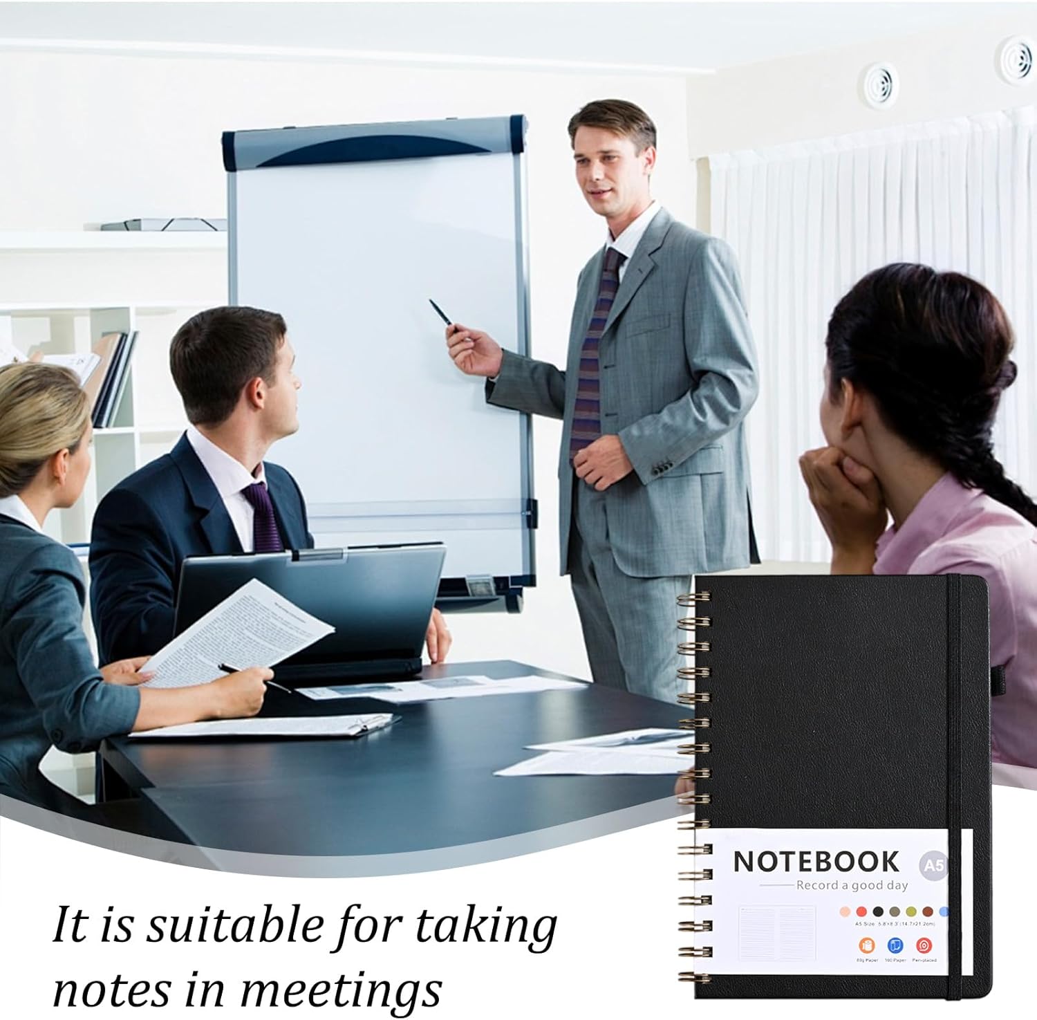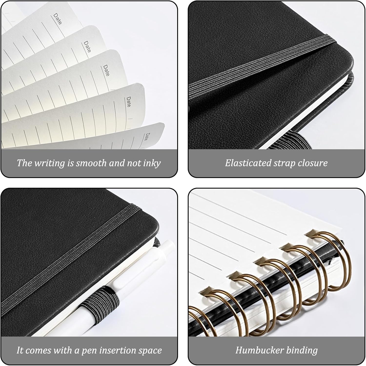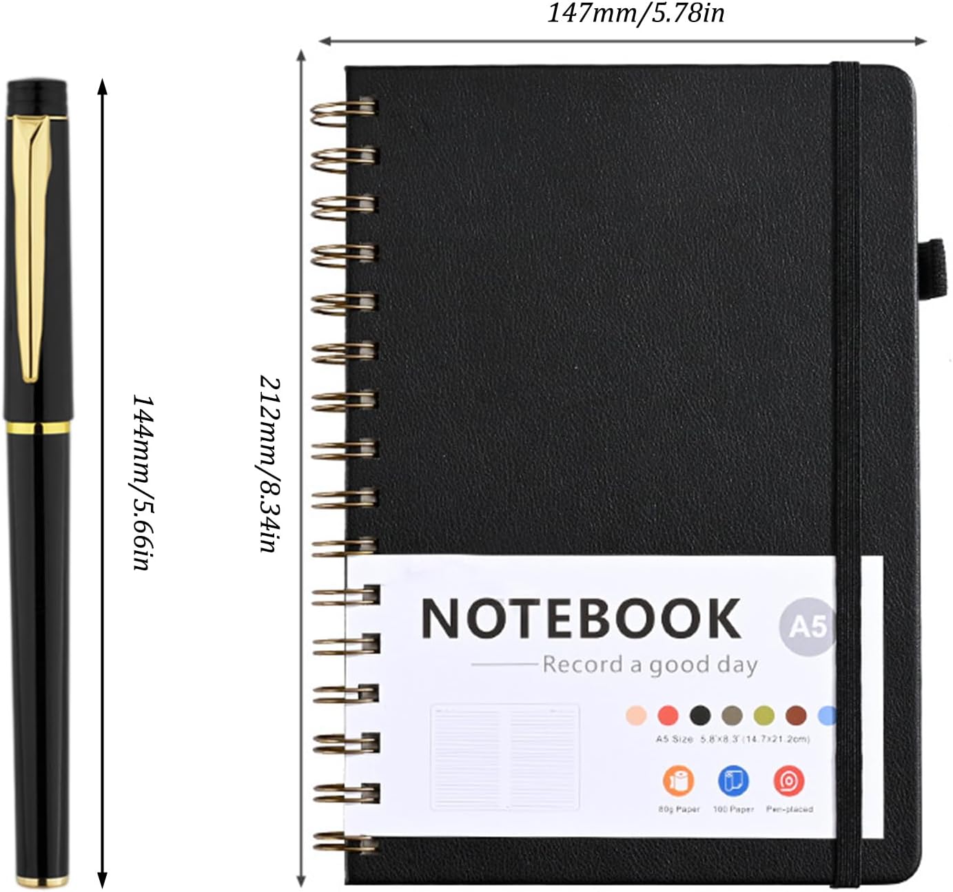 【Materiale PU di alta qualità per una protezione affidabile】 Questo materiale PU resistente protegge i tuoi appunti da umidità e danni, mentre il pratico elastico garantisce un'organizzazione e una protezione ottimali. 【Carta robusta e priva di acidi per appunti di lunga durata】 Questa carta più spessa e robusta è priva di acidi, garantendo che i tuoi pensieri, idee e ricordi durino a lungo senza ingiallire o sanguinare. 【Comoda rilegatura a doppia spirale e apertura piatta a 180°】 La robusta rilegatura a spirale consente di girare le pagine senza sforzo e fornisce un'apertura piatta a 180°, ideale per scrivere e modificare senza restrizioni. 【Tasca interna espandibile e portapenne integrato】 Il dorso del notebook ha una comoda tasca interna espandibile per biglietti da visita, post-it e altri piccoli oggetti. Il portapenne ti permette di avere una penna sempre a portata di mano. 【Kit completo per uso immediato】 Include taccuino (A5, 21,2 x 15,6 cm) e penna gel di alta qualità – ideale per appunti, pensieri e schizzi, in viaggio o in ufficio.